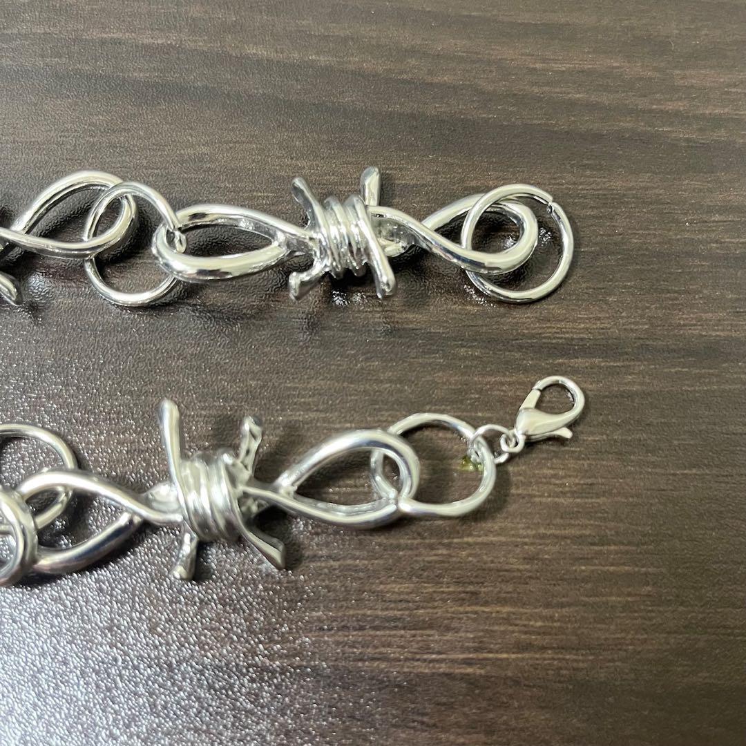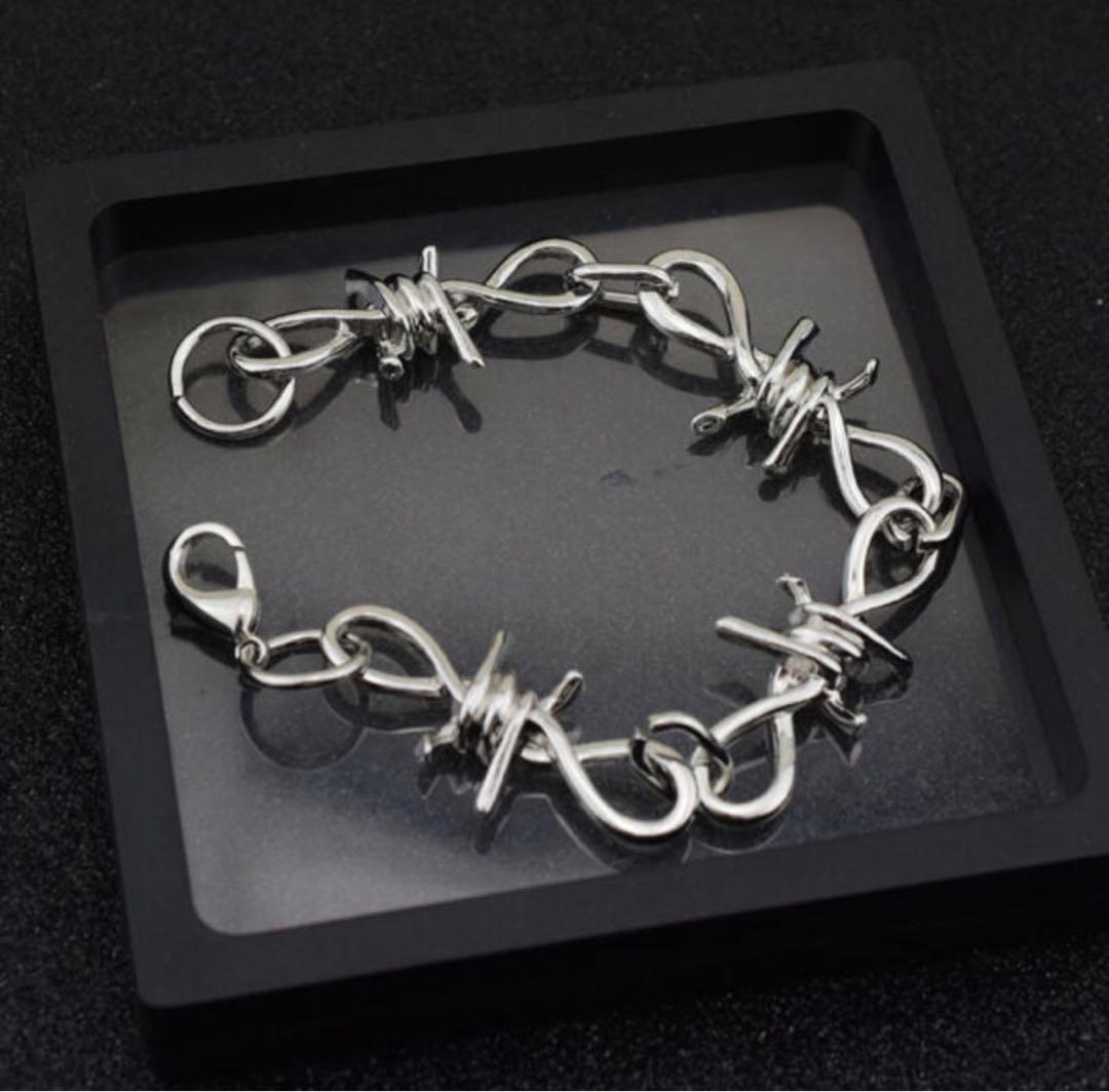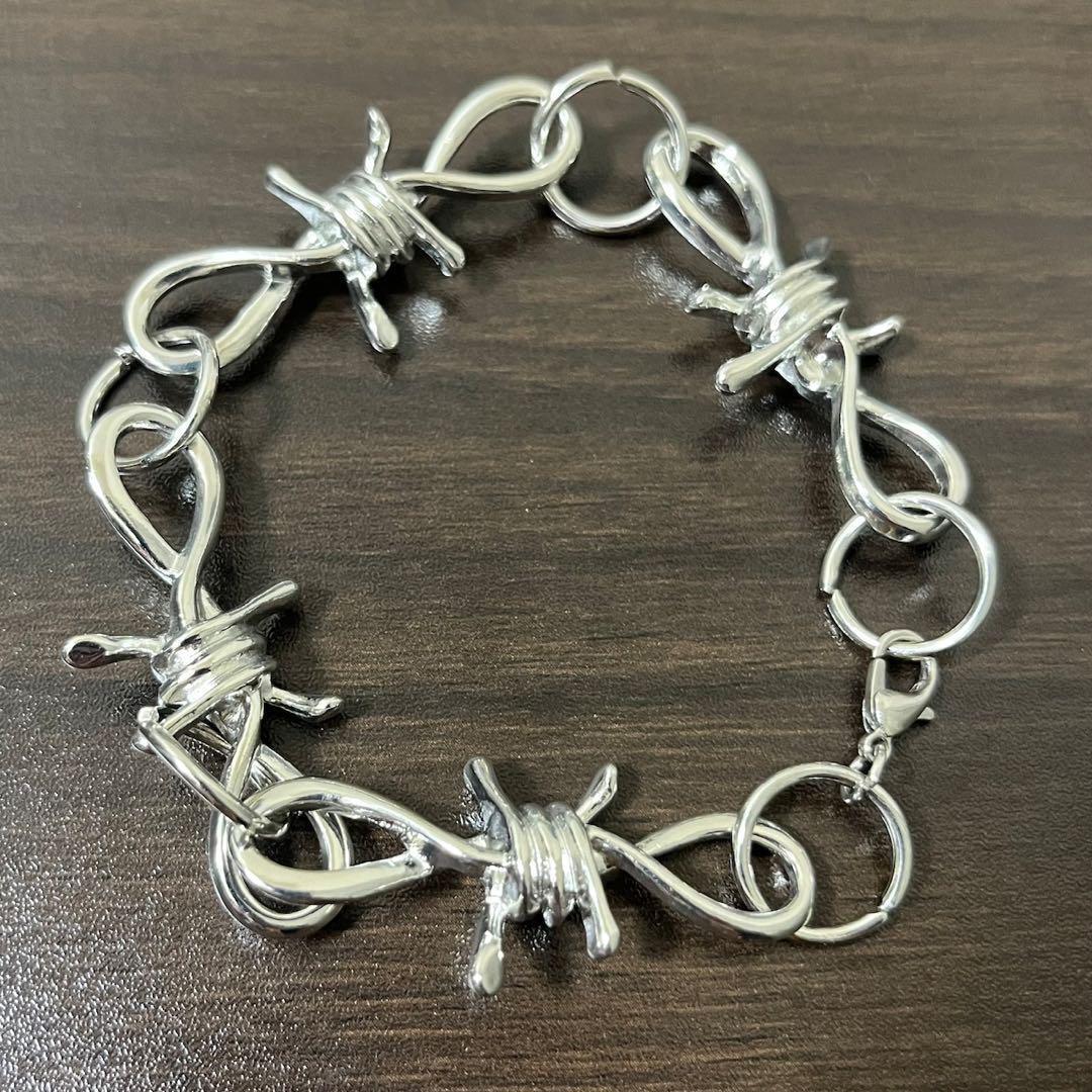 有刺鉄線 ブレスレット シルバーチェーン 韓国ファッション ロック系