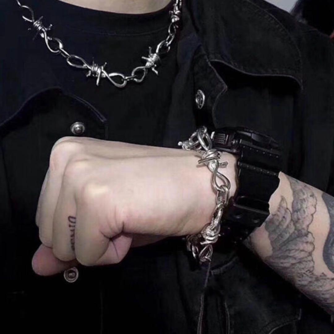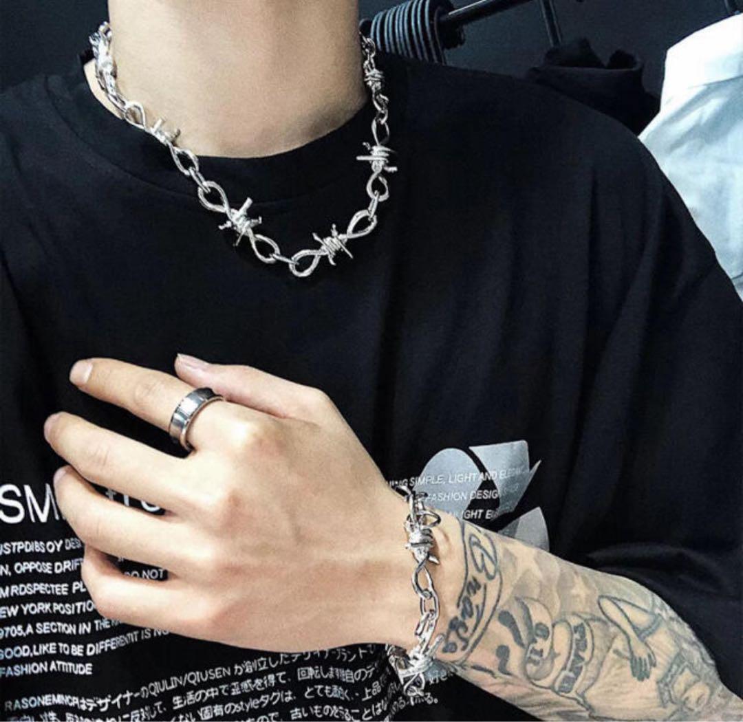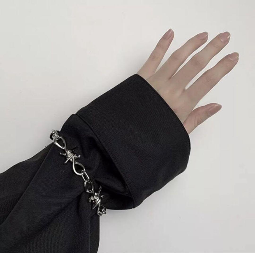 有刺鉄線 ブレスレット シルバーチェーン 韓国ファッション ロック系