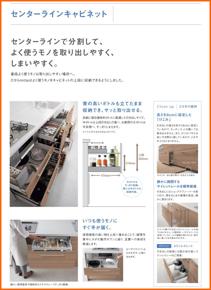 〜ミッテの特徴〜 見た目はすっきりシンプルに。 ほんとうに使いやすいキッチンをしっかりと考えました。 シンプルだけどうれしい、そんな mitte です。 ※商品の詳細につきましてはメーカーHP・カタログでご確認願います。 ◆本タイプ以外の型・サイズもございます。 ◆システムキッチンの他、ユニットバス・洗面化粧台・トイレ等の水廻り商品も取り扱って おります。 ◆オプション等で別途お見積りが必要なケースのお問い合わせは、TEL・FAX・メールにて お気軽にどうぞ! ◆メーカーの定価見積書からもお買い求め頂けます。 事前にご連絡の上、FAXまたはメールにてお送り下さい。 弊社価格の見積書を作成致します。 ◆サイズ違い等、ショップ上に掲載されていない商品をご希望の方はお問い合わせ下さい。 ⇒ クリックで”WEBカタログ”にリンクします |