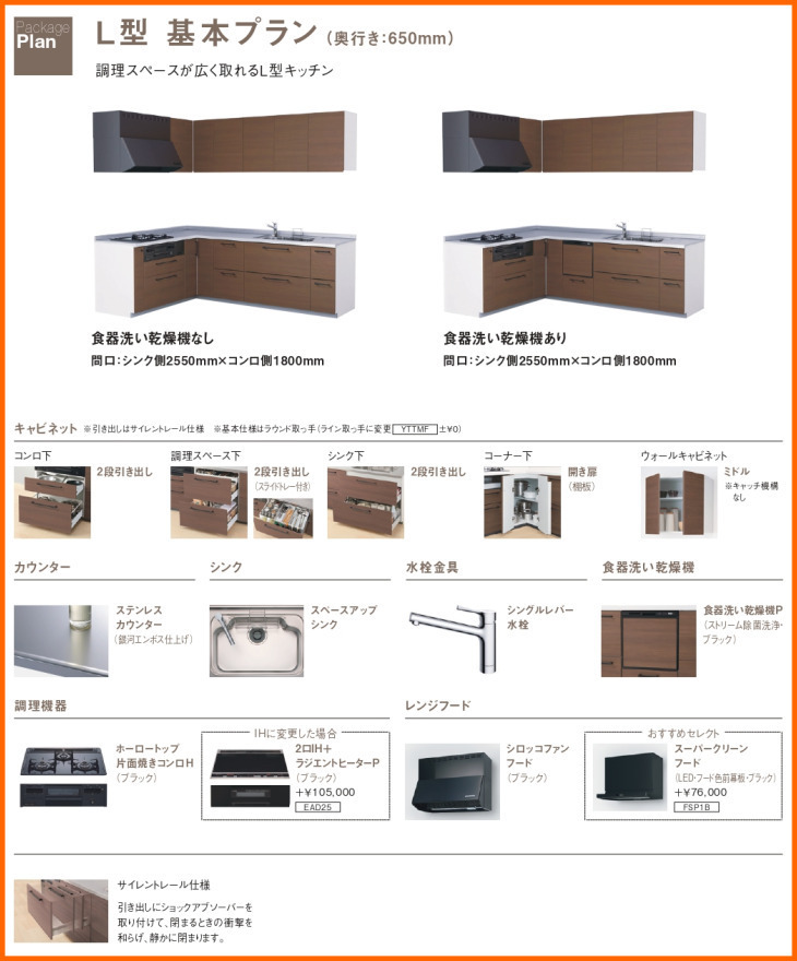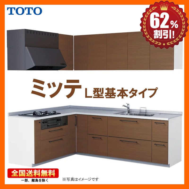 TOTO システムキッチン ミッテ 2550 L型 基本プラン コンロ側165cm グループ1(食洗機別途)Y |