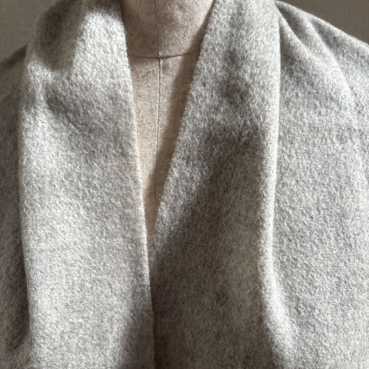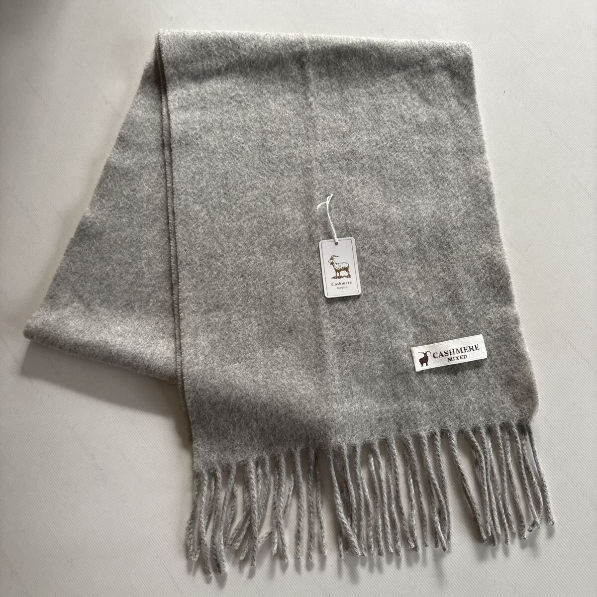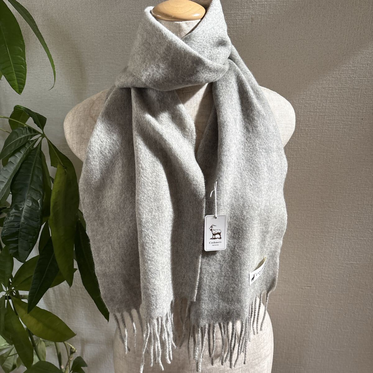 手触りの良い優しい感触、カシミヤ 混ですので暖かいマフラー、グレーですのでユニセックスでお使い頂けます。