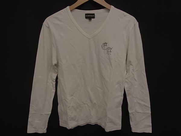 EMPORIO ARMANI エンポリオアルマーニ コットン×ポリウレタン ラインストーン 長袖 トップス 表記サイズ M 洋服 ホワイト系 DH1245