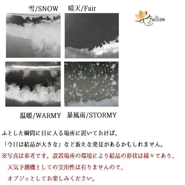 天候によって中の結晶が美しく変化する、インテリアにもおすすめのストームグラスです。