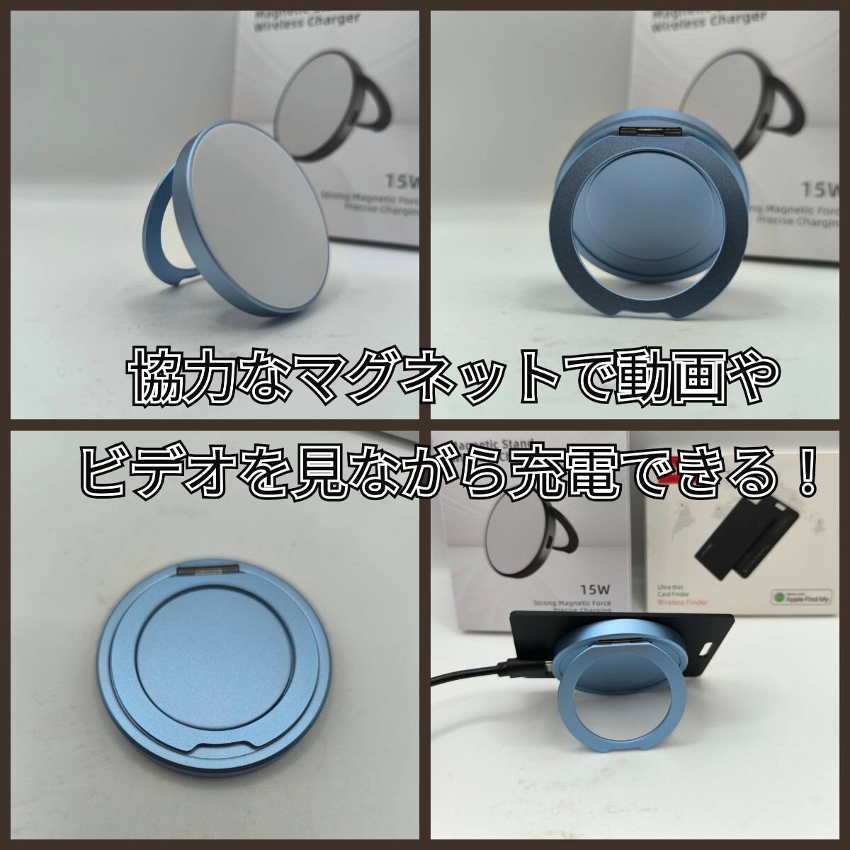 15W急速充電対応のマグネット式ワイヤレス充電器です。