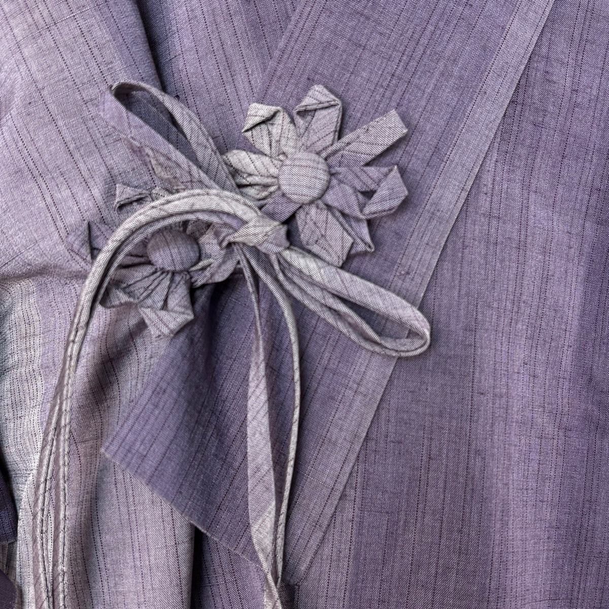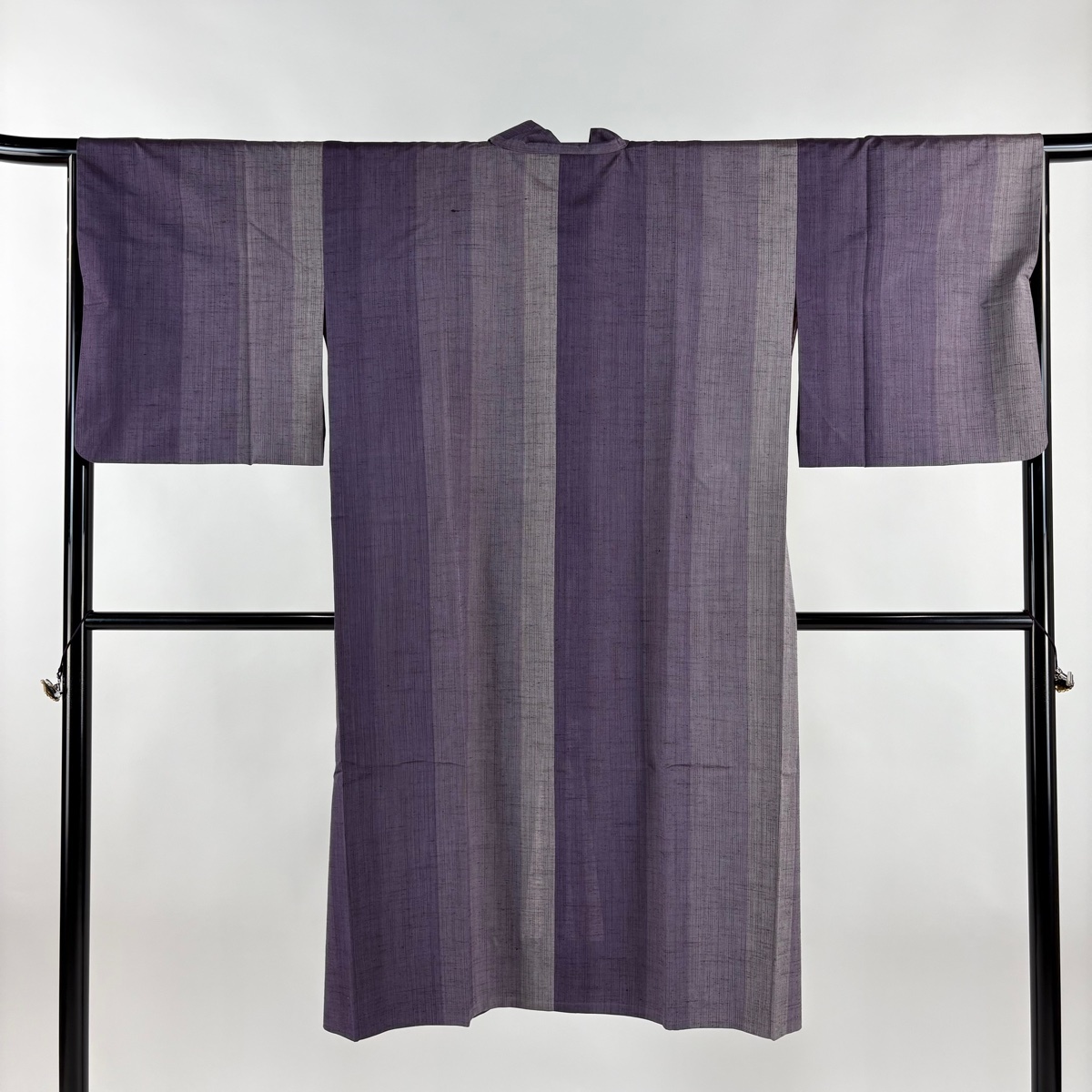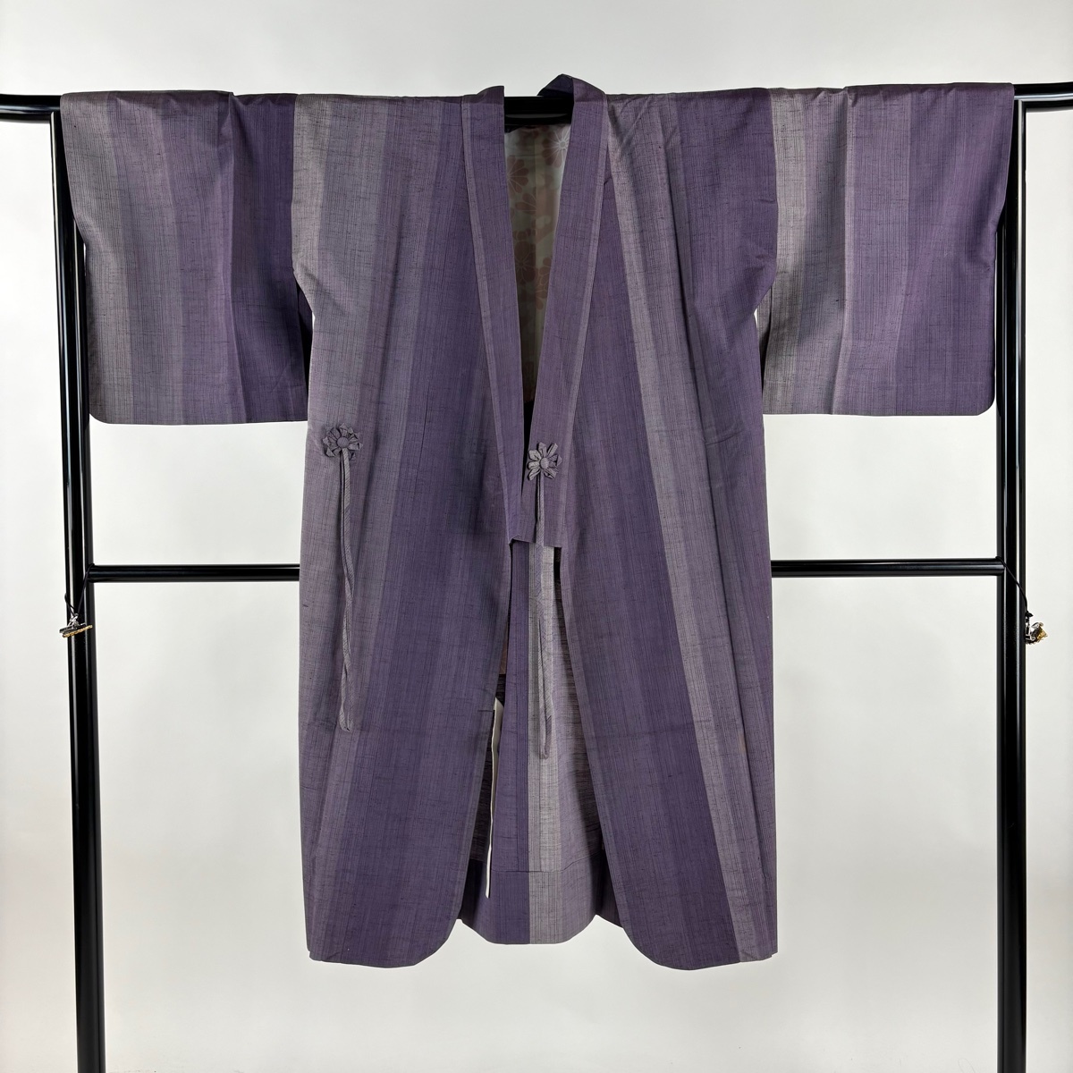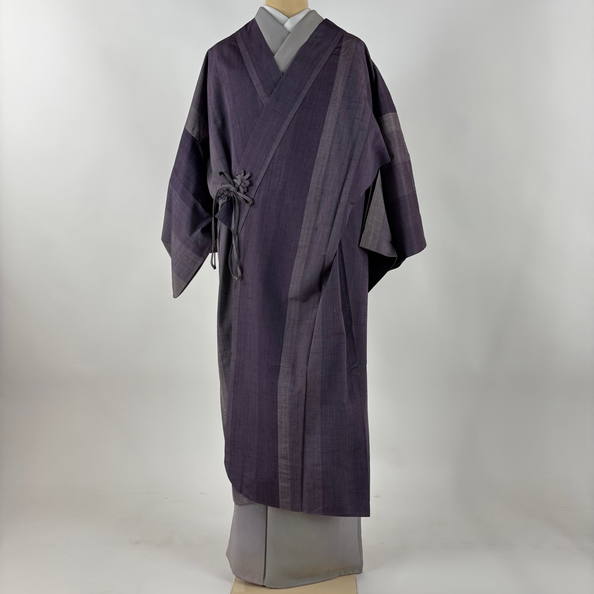 | 道中着 逸品 和装コート 着物衿 紬地 縞 紫 身丈119 裄丈65 M 正絹 【中古】 |