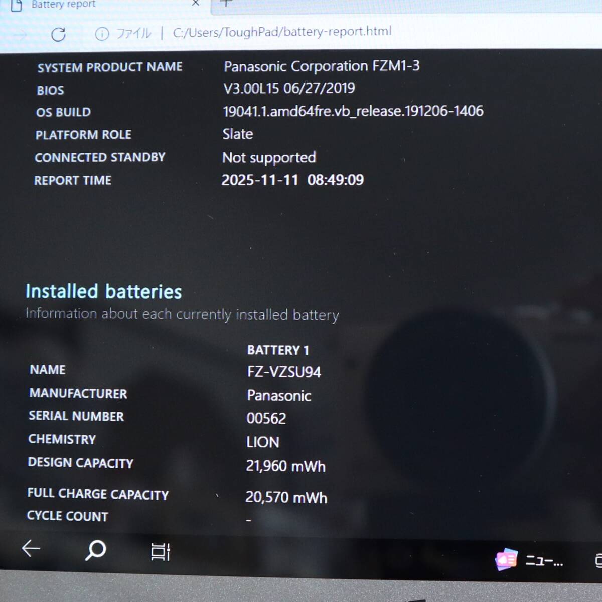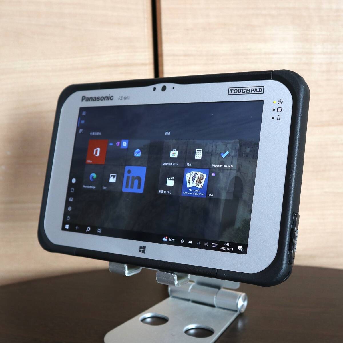 パナソニック製・人気タフパッド、FZ-M1JASVJVJ(2018年9月発売モデル)を出品します。スペックは・・・●CPU:Core i5 7Y57 1.2GHz ●SSD:128GB ●メモリ:4096MB ●液晶:7インチワイド(1280×800)●USB ●Bluetooth ●無線LAN ●LTE SIMフリー ●導入済みOS:Windows 10 Pro 64ビット・・・など。出品内容は・・・●本体●バッテリー(使用可能)●ACアダプター●電源コード・・・以上。本体外観に目立ったキズ無く綺麗です。液晶面も綺麗。今回の出品に際し新規セットアップしネット接続など基本的な動作確認できていますが、中古品という性格上起動しない等の致命的障害以外はノークレーム・ノーリターンでよろしくお願いしますね。発送はゆうパック元払い(一律:1,000円、但し北海道&沖縄は2,000円)を予定。それでは人気モデル TOUGHPAD FZ-M1 シリーズを手頃な値段でお探しの方々、この機会に是非よろしくお願いします。
