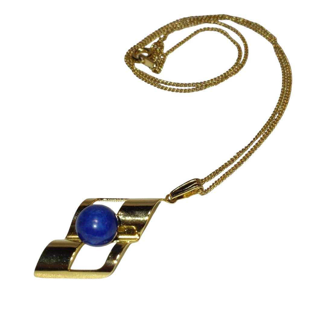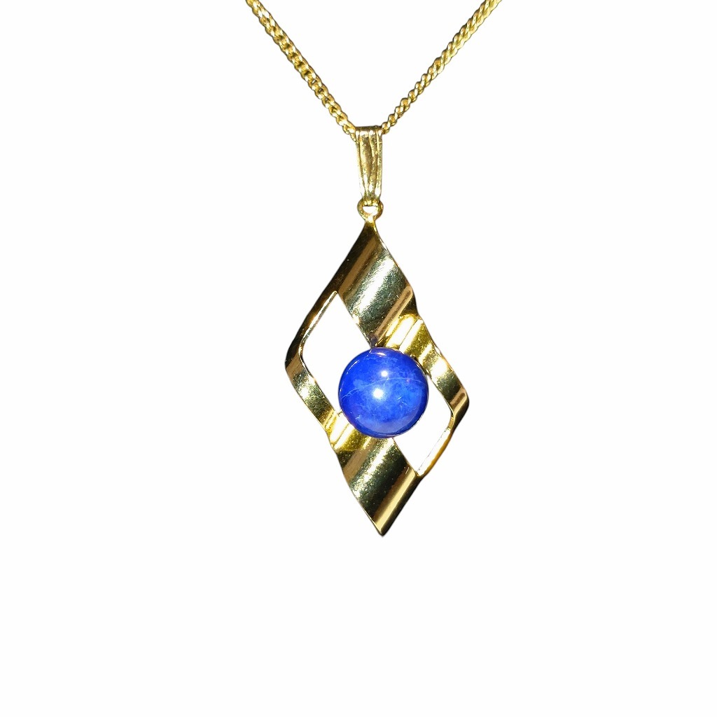 ラピスラズリ パーティーネックレス ペンダント チェーン長約41.5cm ゴールドカラー 首飾り レディース アクセサリー 【5402】