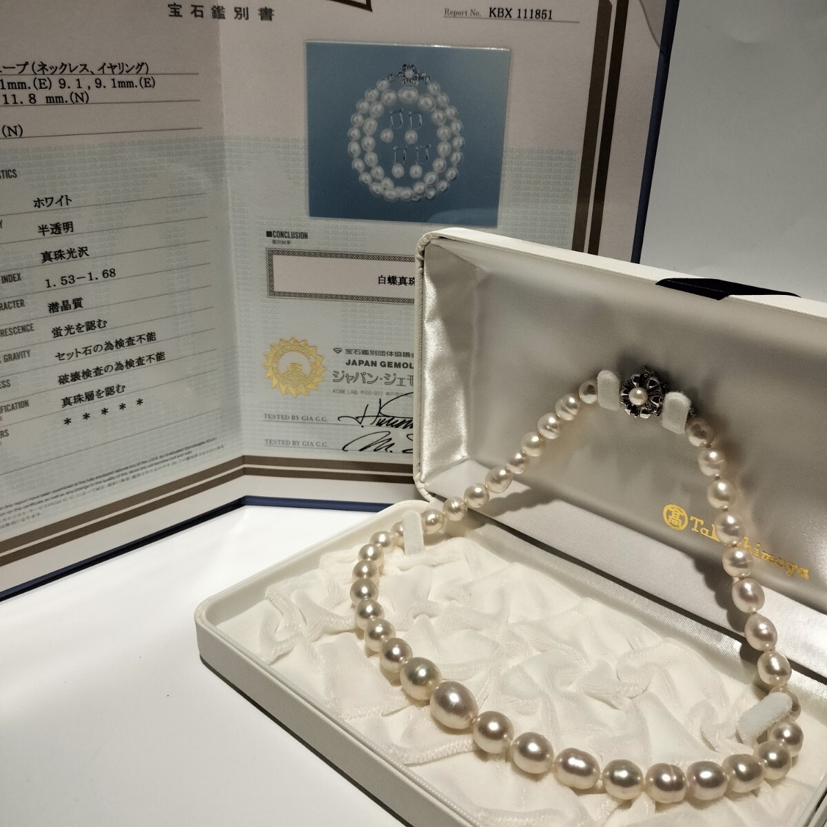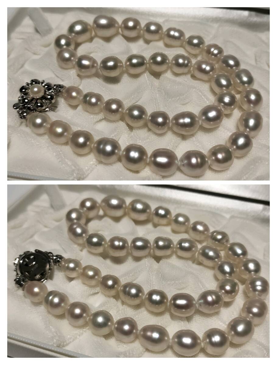 【テリ抜群!!】白蝶真珠 シロチョウ パール ネックレス 8mm〜11.8mm 45cm SILVER 刻印 56.0g 本真珠 pearl jewelry necklace 鑑別書