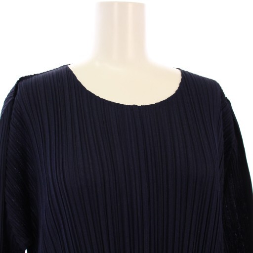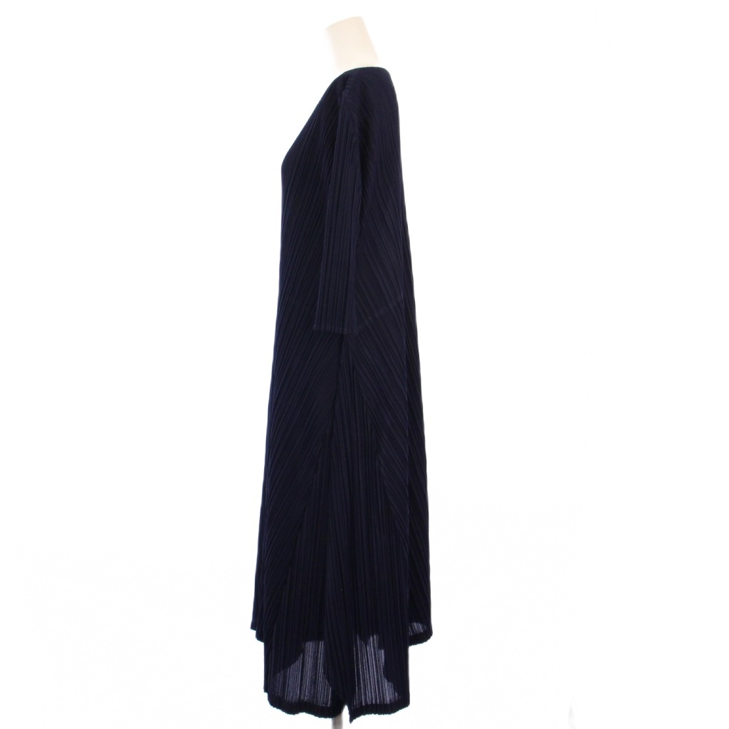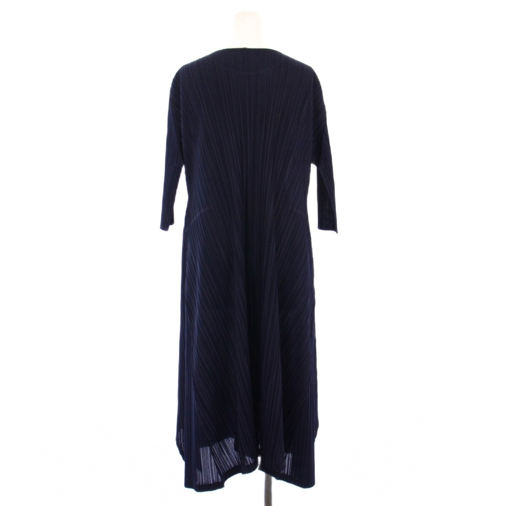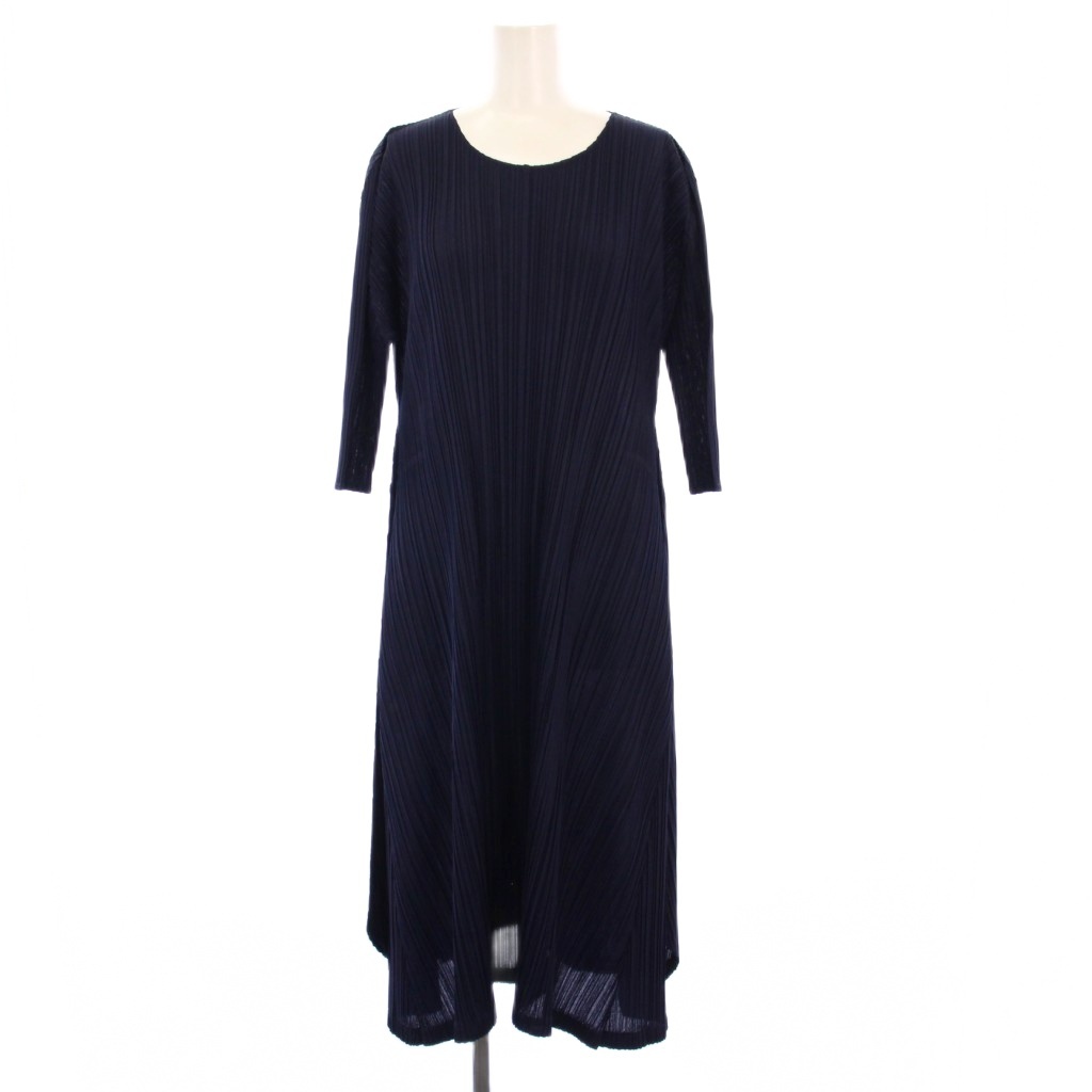 プリーツプリーズ PLEATS PLEASE イッセイミヤケ プリーツ ワンピース 五分袖 ロング 2 紺 PP41JH285 /KH レディース