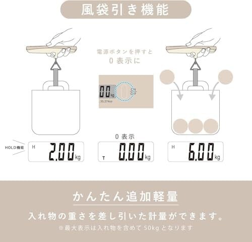 ドリテック(dretec) 日本メーカー ラゲッジスケール 旅行はかり 荷物はかり 吊り下げ デジタル 風袋引き機能 50kg 旅行グッズ 便利グッズ はかり スケール トラベルグッズ 三角スケール 飛行機 快適グッズ トラベル 旅行 海外 国内 ベージュ