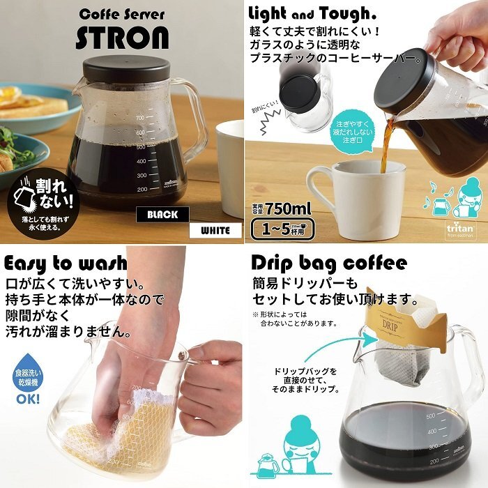 軽くて扱いやすい、電子レンジも使用可能なコーヒーサーバーです |