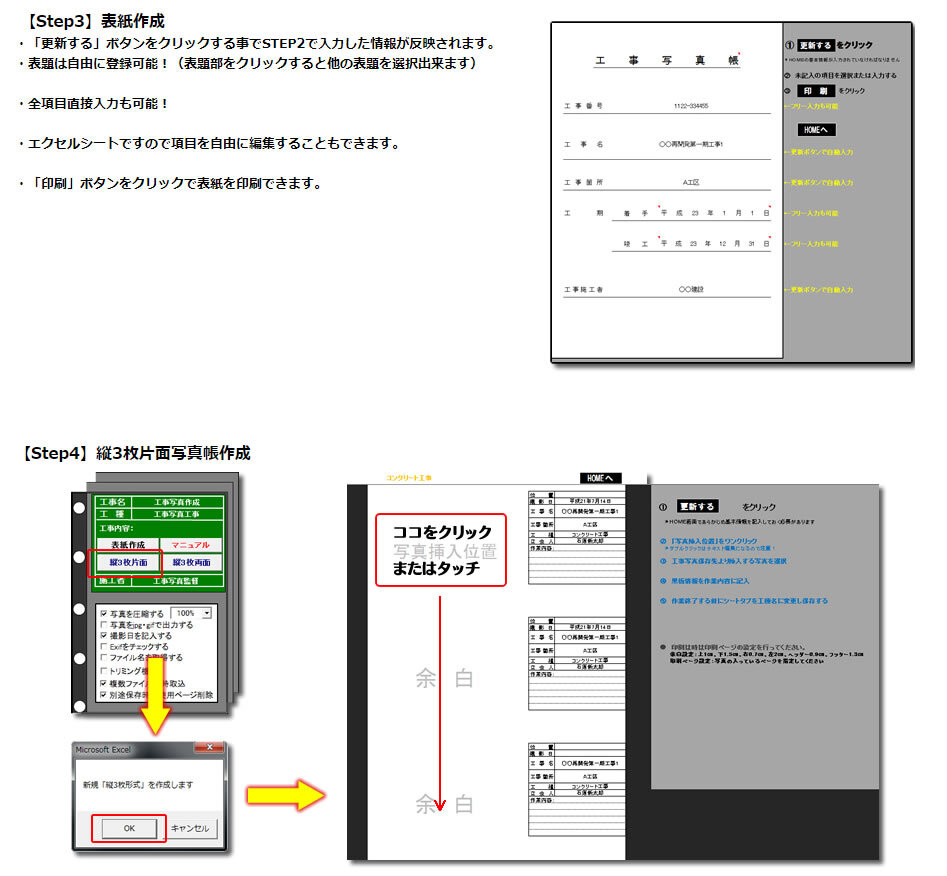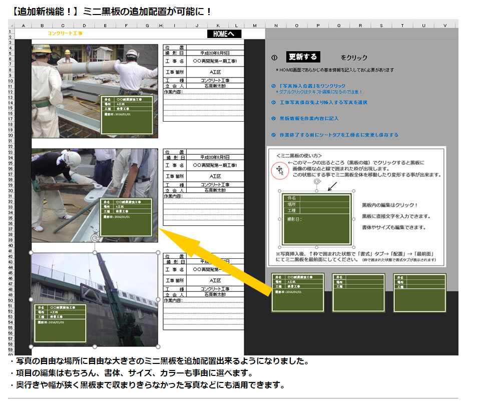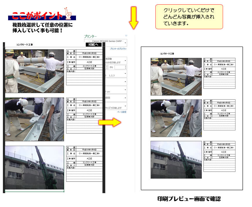 ・写真をノートに貼り付ける感覚でどんどん工事写真帳を作成することが出来ます。