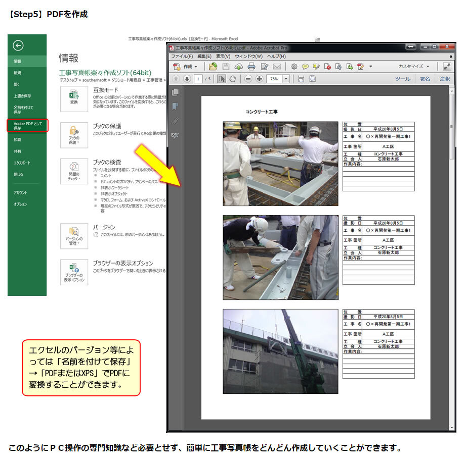 「工事写真帳楽々作成管理キット」は誰でも簡単に工事写真帳を作成できる様々な工夫が施されているソフトで、現在までに数多くのゼネコン企業の方々に活用して頂いております。