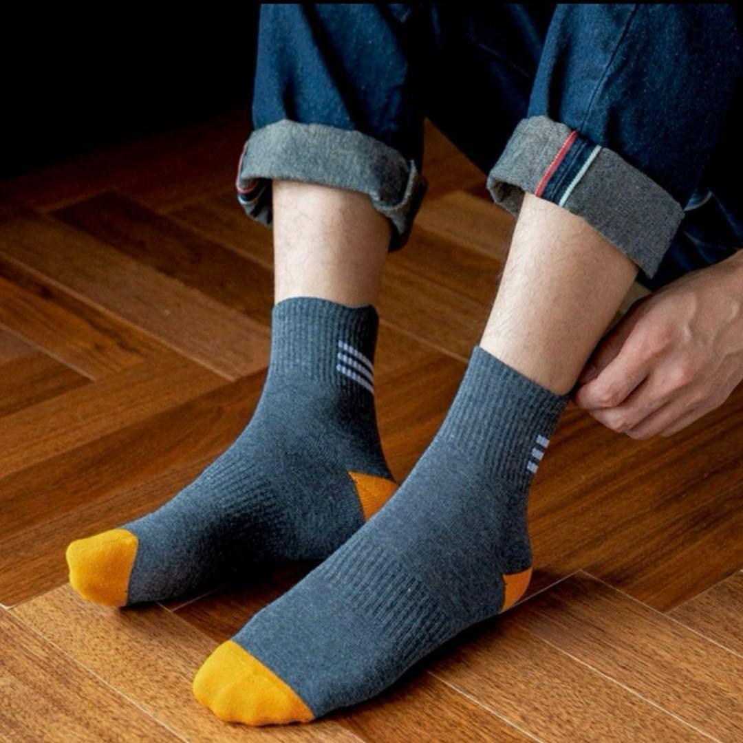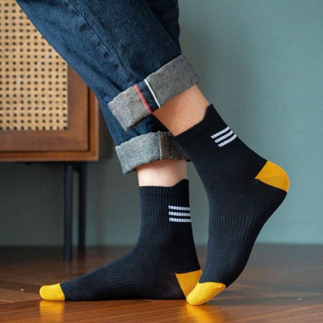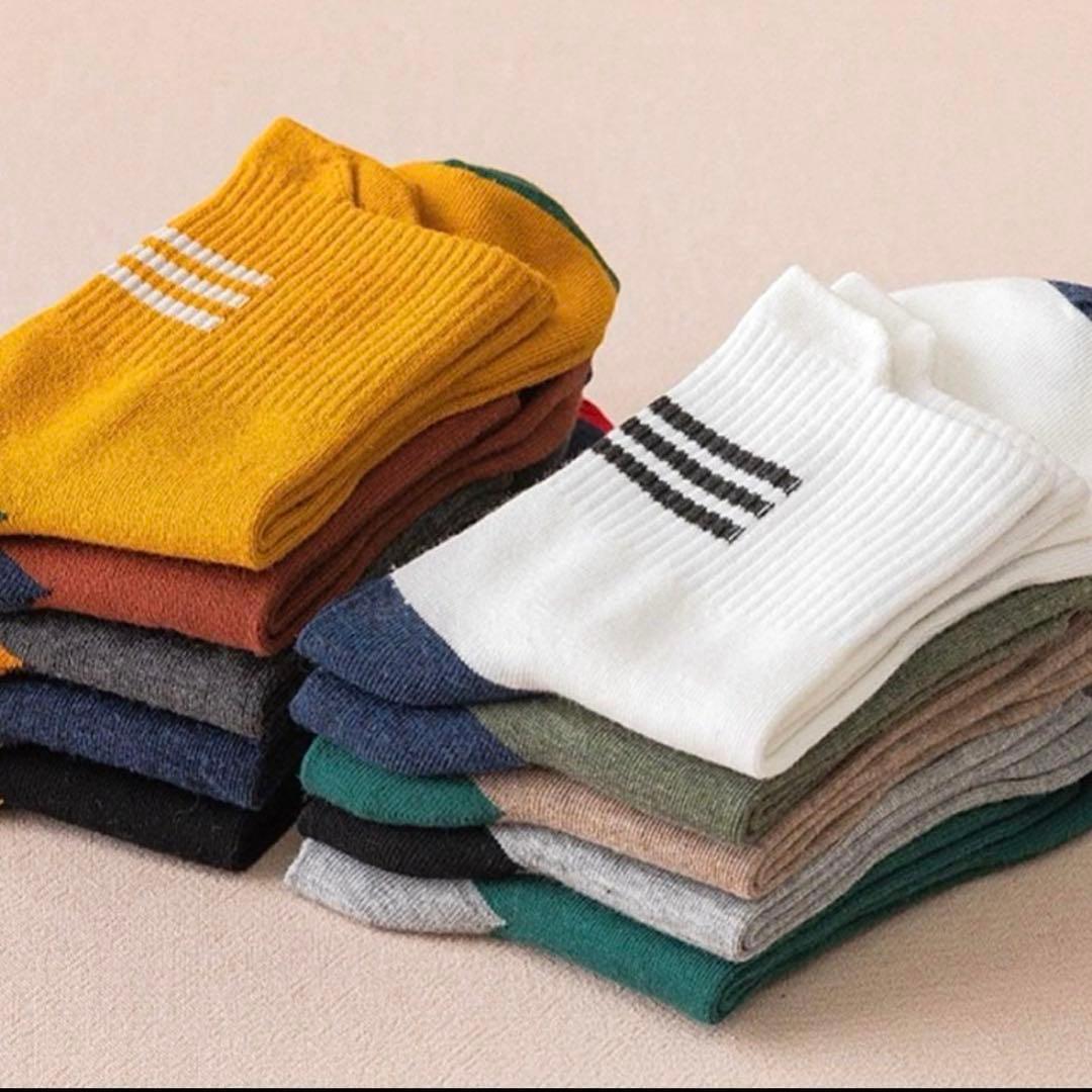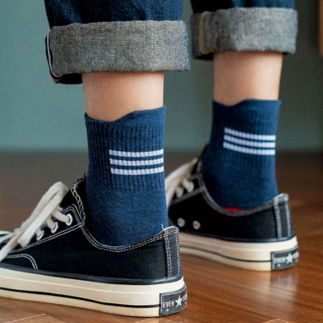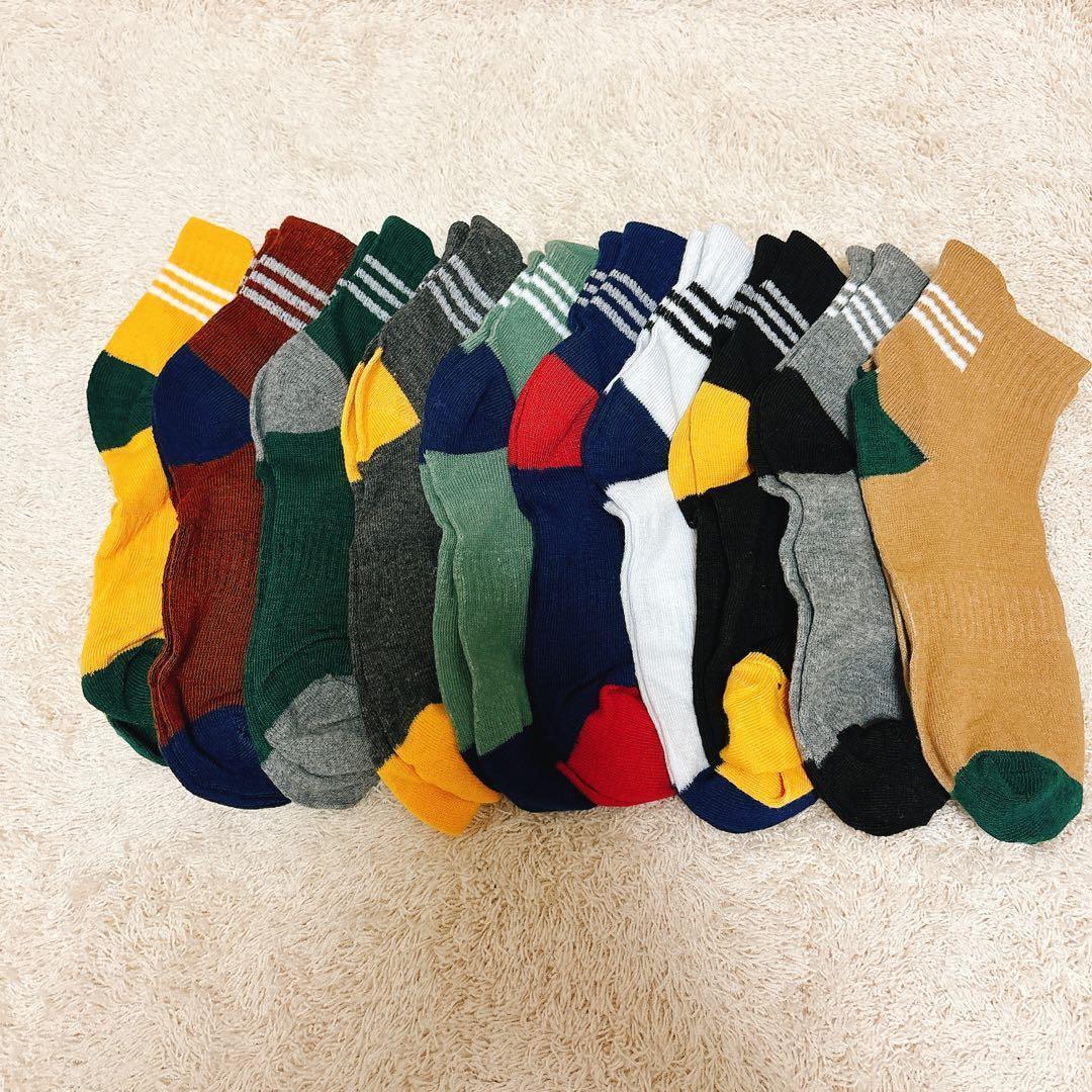 カジュアルなデザインで薄めの中厚手で短めなクルーソックスです。