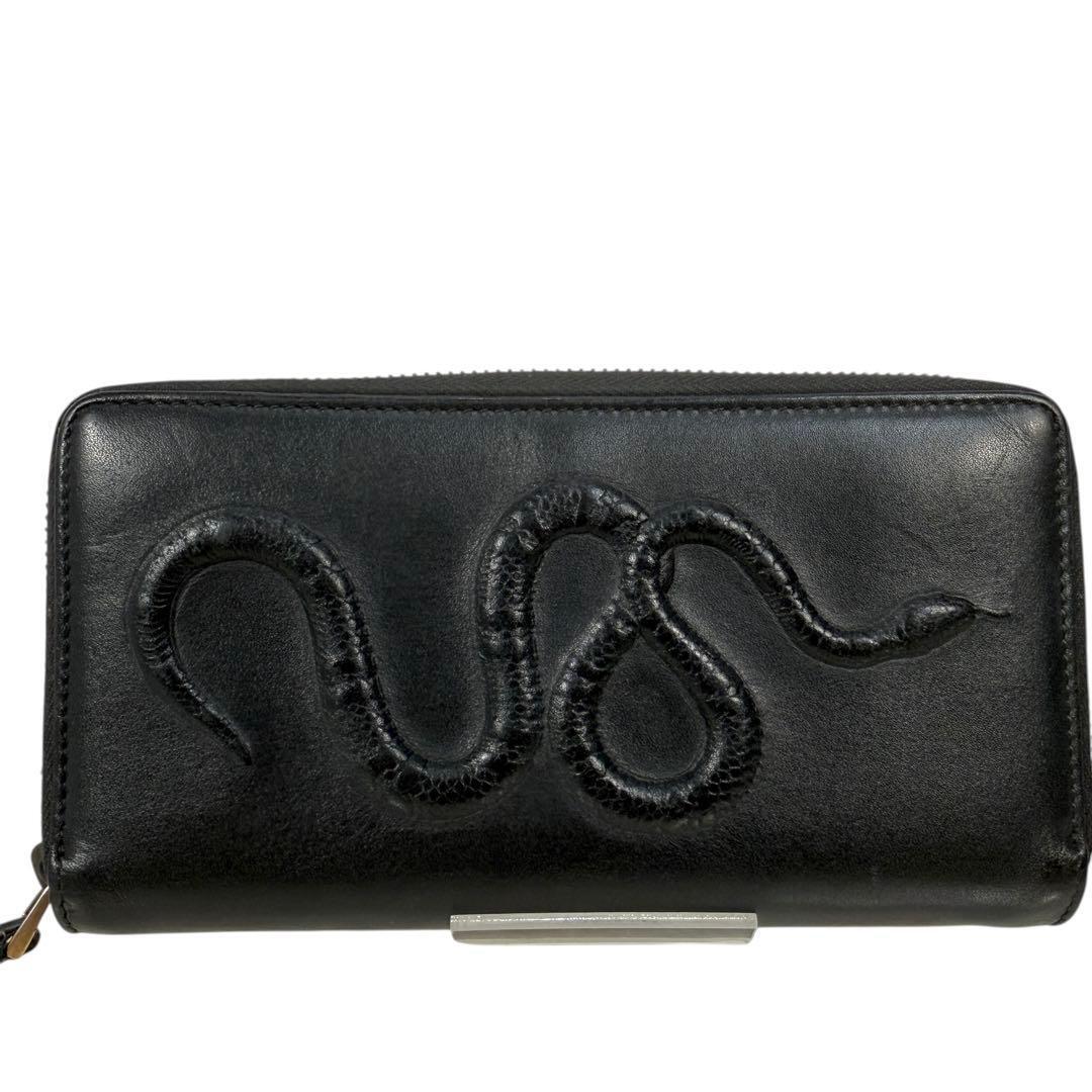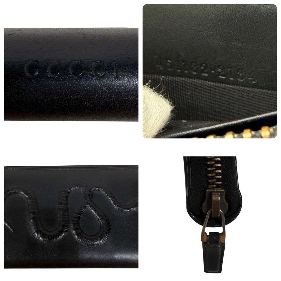 希少 GUCCI ミケーレ期 カーフレザー マットスネーク Gスネーク 蛇 ラウンドファスナー ラウンドジップ 長財布 ブラック メンズ グッチ