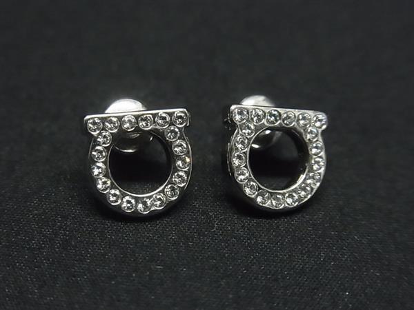 1円 ■極美品■ Salvatore Ferragamo フェラガモ ガンチーニ ラインストーン ピアス アクセサリー レディース シルバー系 FS6968