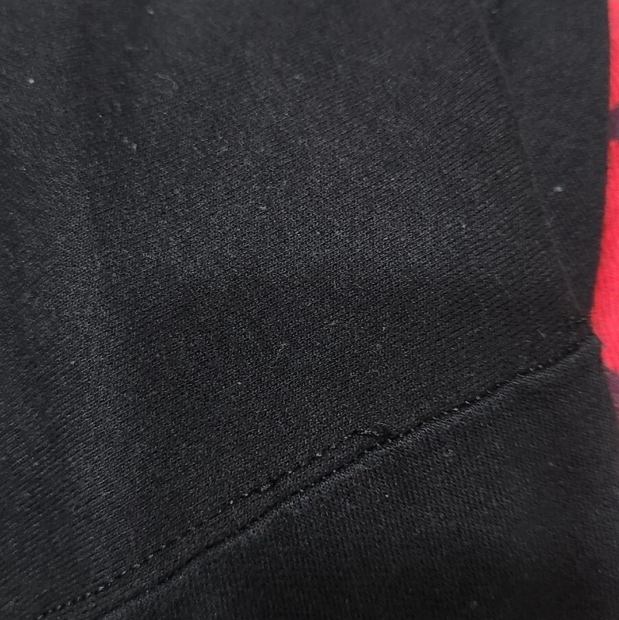ブラックボディにレッドのグラフィックが映えるデザインで、ストリートや古着コーデにもぴったり。