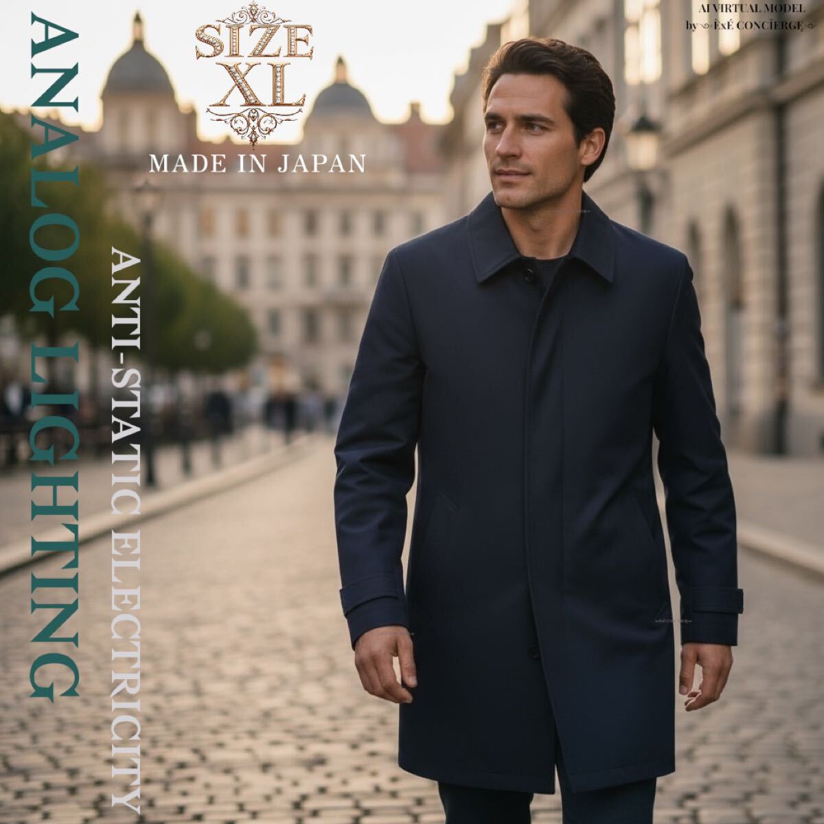 アナログライディングのテクニカルコート。完売品。参考定価11万。クラフトマンが一点一点丁寧に製作するため個体数が非常に少なく貴重。ラグジュアリー×スポーティーなストレッチツイルファブリックを採用したアクティブステンカラーコート。しっかりとした厚みがあり防風性と防寒性も期待。各所異なる素材を適材適所巧みに使い分け、一つの作品として仕上げています。ANTI-STATIC ELECTRICITYシステム(静電気防止)搭載。ゆったりとしたシルエットと美しいボディライン。カラーは黒に限りなく近いダークネイビー。日本製。マルニャ物産取扱い国内正規品。肩パッド無し。センターベント。比翼ボタン開閉。両サイドオープンポケット。