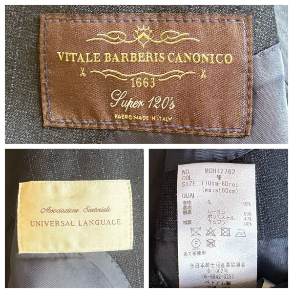☆カノニコ × ユニバーサルランゲージ★秋冬 総裏 本切羽 サイドベンツ 170cm-6Drop M相当 メンズ スーツ セットアップ ダークネイビー