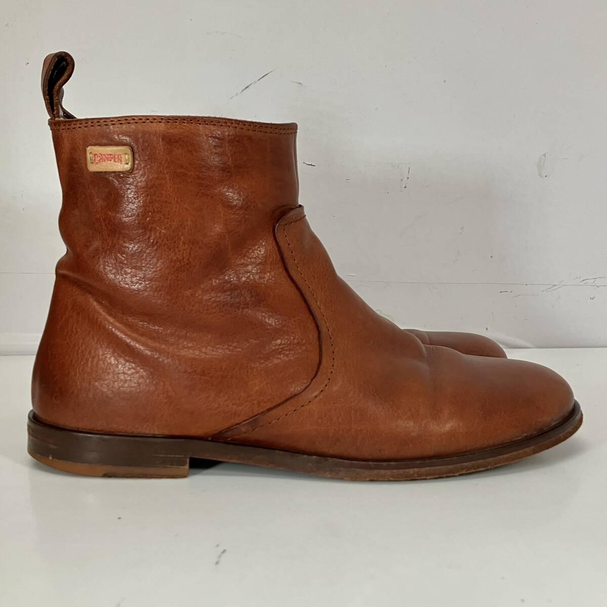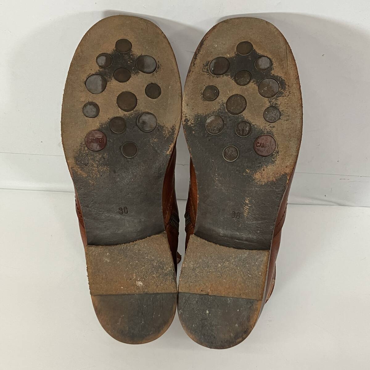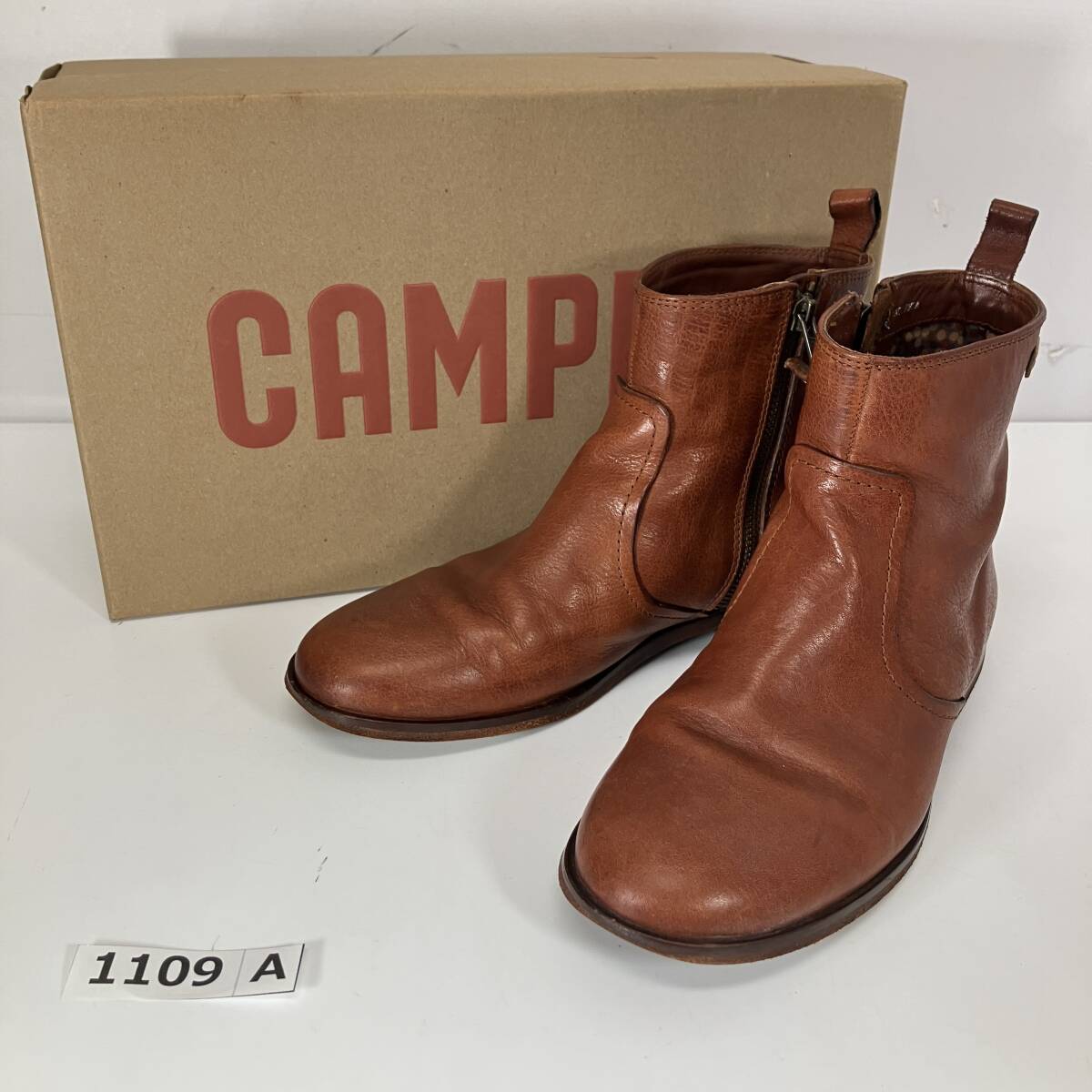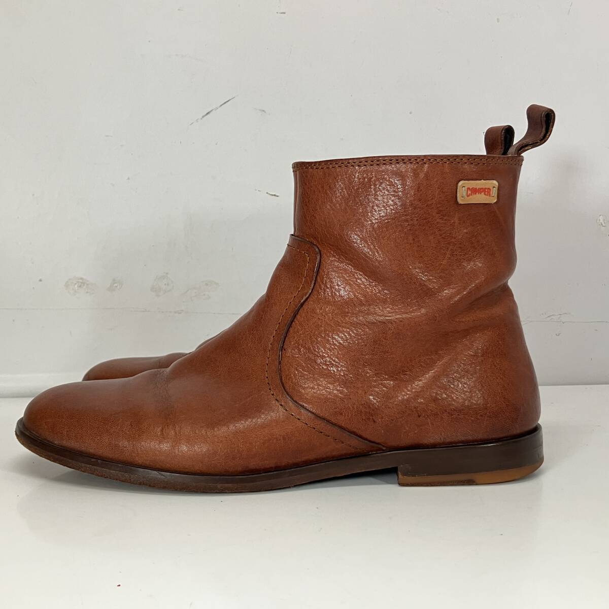 (志)【箱付】CAMPER/カンペール Woodie 本革 レザー ショートブーツ ブーティ サイドジップ EU38(約24cm) ブラウン 茶(I)1109A