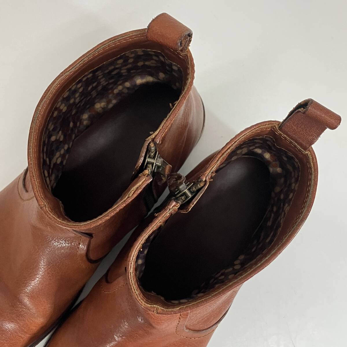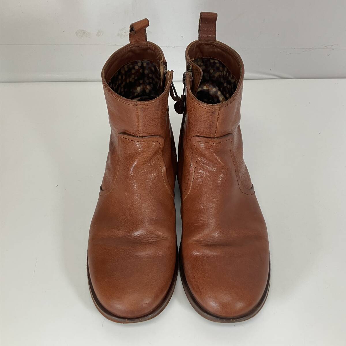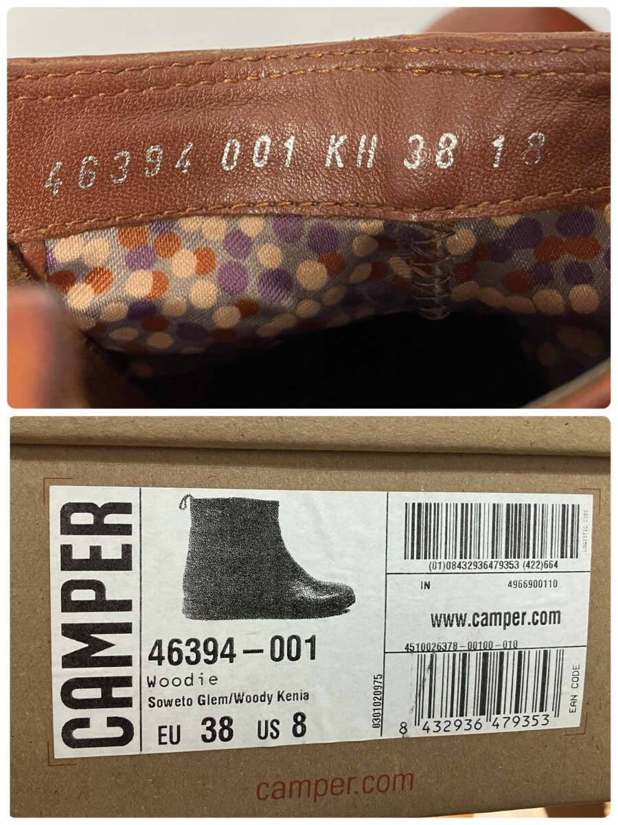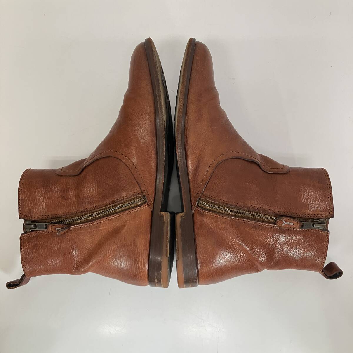 (志)【箱付】CAMPER/カンペール Woodie 本革 レザー ショートブーツ ブーティ サイドジップ EU38(約24cm) ブラウン 茶(I)1109A