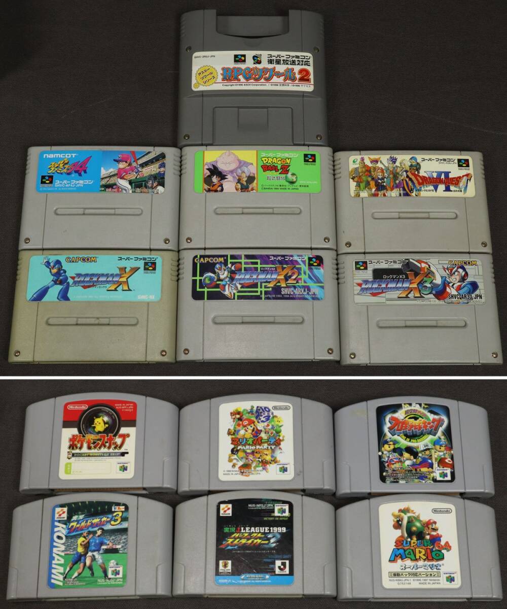 ファミコン スーパーファミコン ニンテンドー64 家庭用ゲーム機 カセット 81本まとめ売り です。 ファミコン…20本 スーパーファミコン…55本 ニンテンドー64…6本 動作未確認。 傷や汚れ、書き込みがございます。 状態は画像でご確認ください。 (名前の書き込みにはモザイクを入れております。) 画像にある物が全てです。 ※撮影に伴う備品類は付属しません。 万が一、タイトルなど記載に誤りがある場合は恐縮ですが画像を優先してご判断ください。 動作確認しておりませんのでジャンク扱いで出品いたします。(返品不可) 土日は営業時間外ですのでご質問は平日にお願いします。 (返答可能時間 月~金曜日 10:00~17:00) ※いたずら目的の入札や落札後にお取引を放棄する 無責任な行為を防止するため 誠に不本意ではありますが、 新規IDおよび悪い評価が複数回ある方の ご入札は当方により取り消しいたします。 あしからずご了承ください。 |