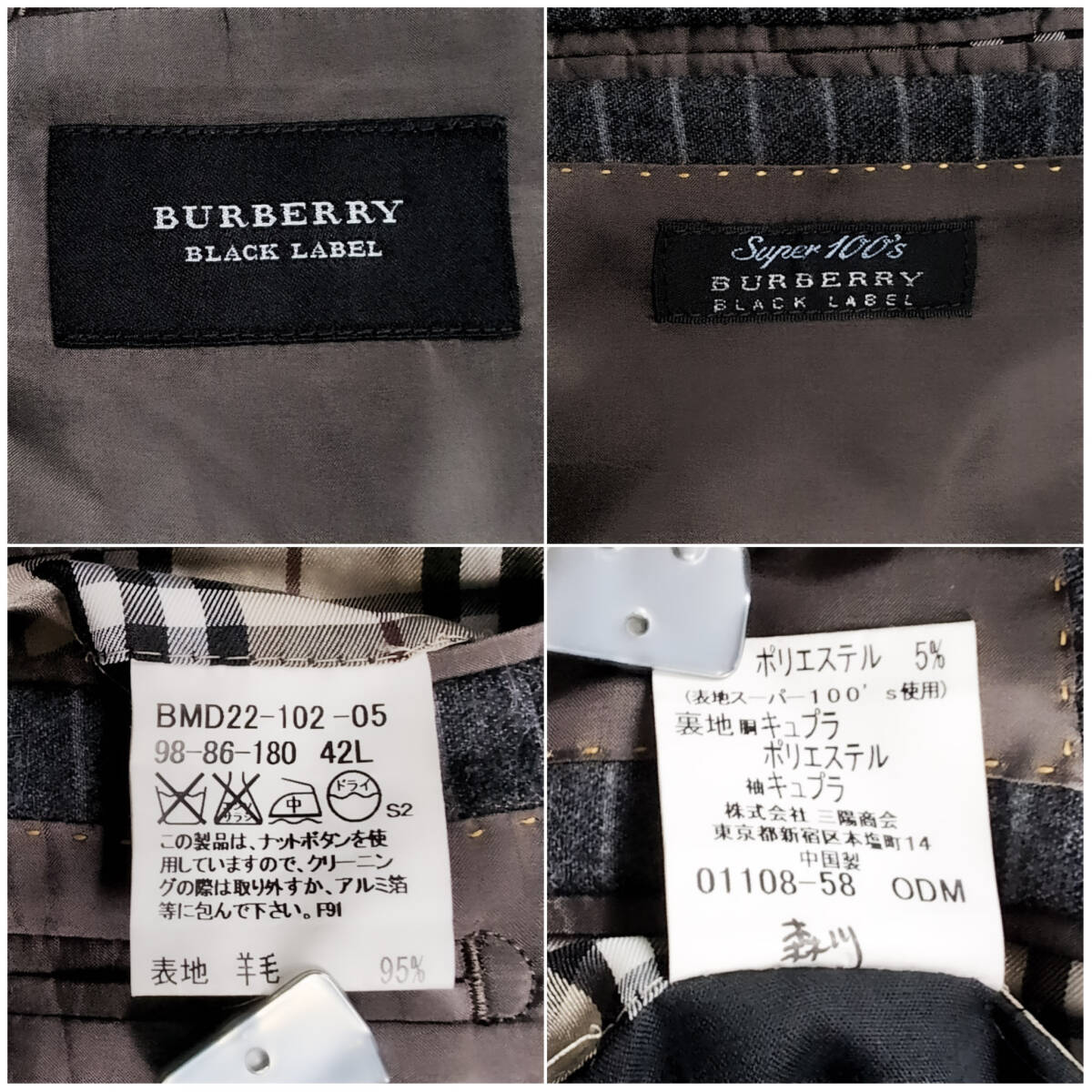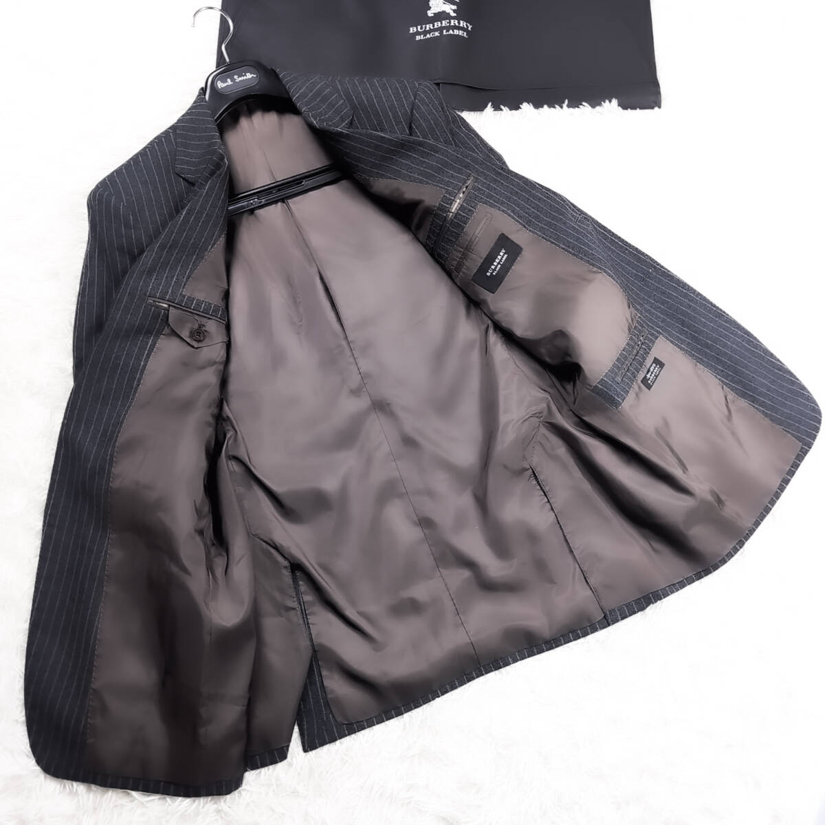 未使用級XXL~XL!BURBERRY BLACKLABELセットアップスーツ赤ワインレッドLL42Lノバチェック柄ストライプ柄ブラレ バーバリーブラックレーベル