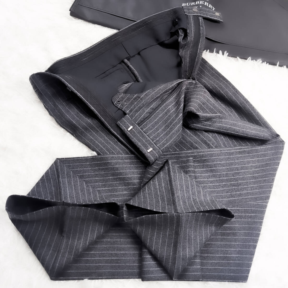 グレー  チョークストライプ柄  裏地グレーボルドー   黒ノバチェック柄