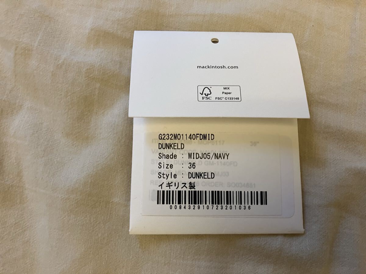 【美品】 2025年春夏 マッキントッシュ MACKINTOSH ダンケルド DUNKELD レインテック 色:ネイビー  サイズ:36
