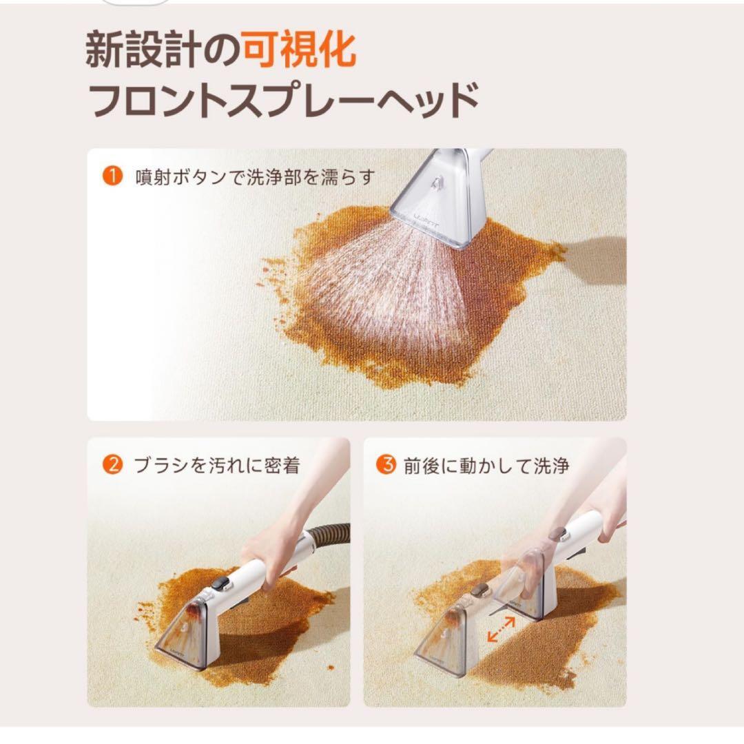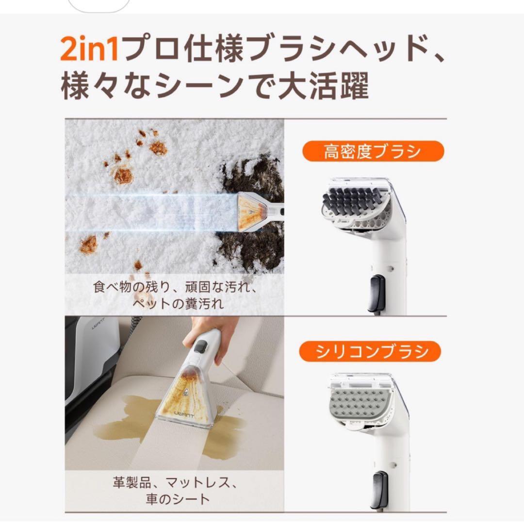 【ポータブルクリーニング】軽量設計(約3.4kg)を採用し、サイズ35.6×18.3×31cmで、1200ml浄水タンク+1200ml汚水タンクを装備しています。3.5m 電源コードと1.6m ホースにより 5.1m の広い有効清掃範囲を確保します。