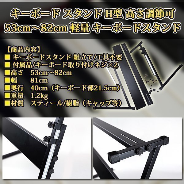 キーボード スタンド X 型 が使いにくい方に H型 調節 53 cm ~ 82 cm 工具不要 軽量 キーボードスタンド 収納 アクセサリー 楽器 ヤマハ