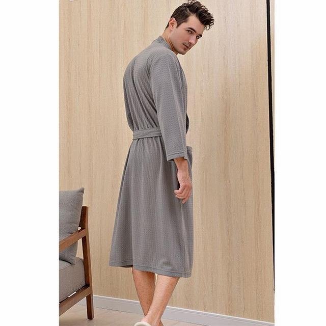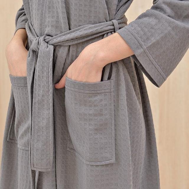 バスローブ ガウン ワッフル生地 メンズ レディース 部屋着 ルームウェア 優しい肌触り 男女兼用 グレー XL