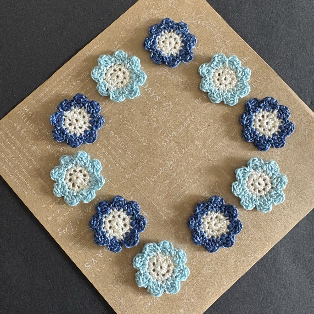 レース糸で編んだ、8枚花びらのお花のモチーフ10個です。