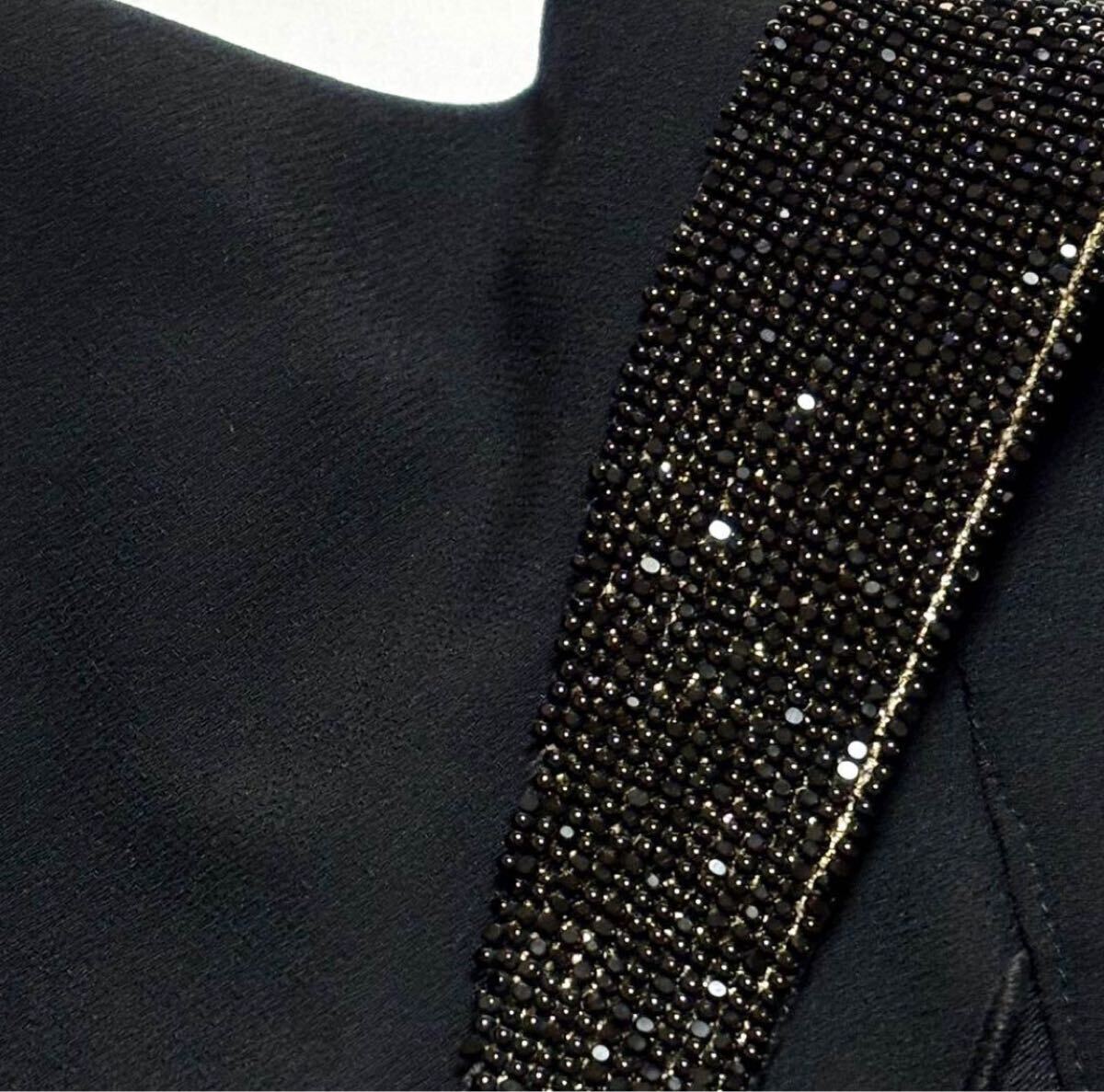 シンプルながらも細部にこだわりが光り、洗練されたブラックドレスはフォーマルなシーンや特別な場面に最適。タイムレスに活躍する、エレガントな一着です。