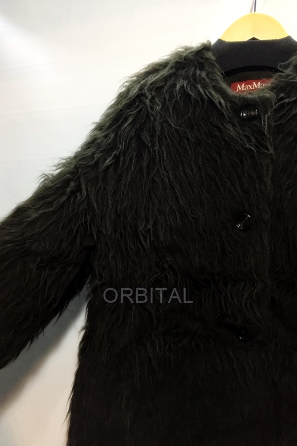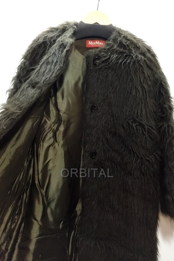 Max Mara STUDIO マックスマーラ ステュディオ 国内正規 アルパカ混 ノーカラー シャギーコート ダークブラウン サイズ38
