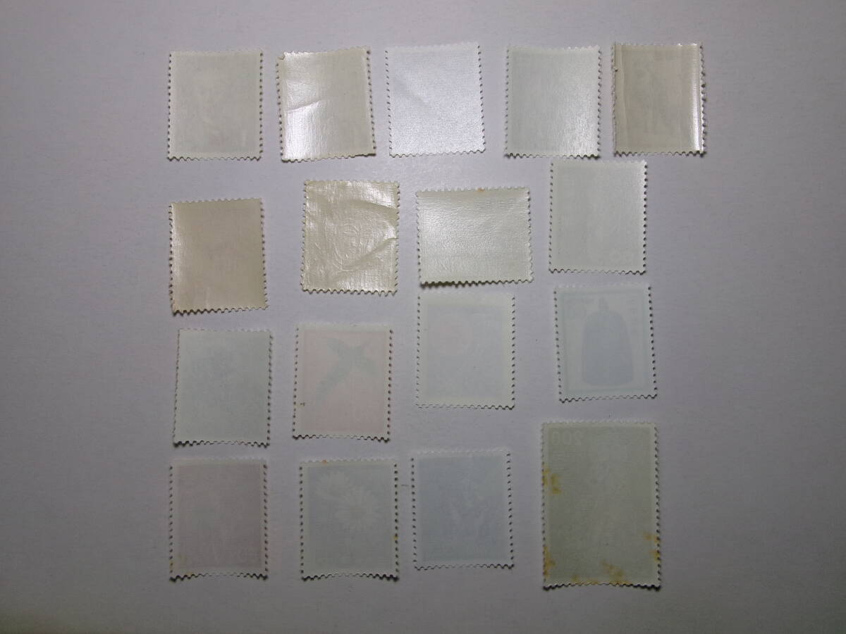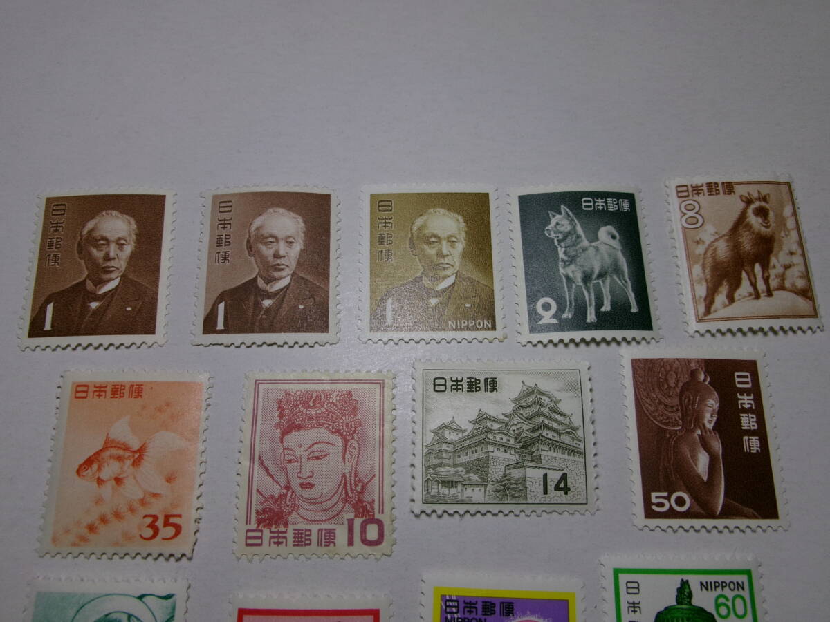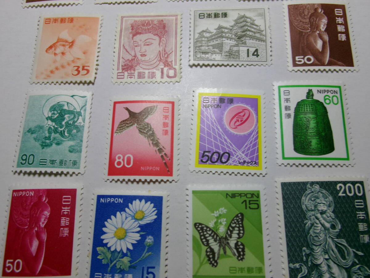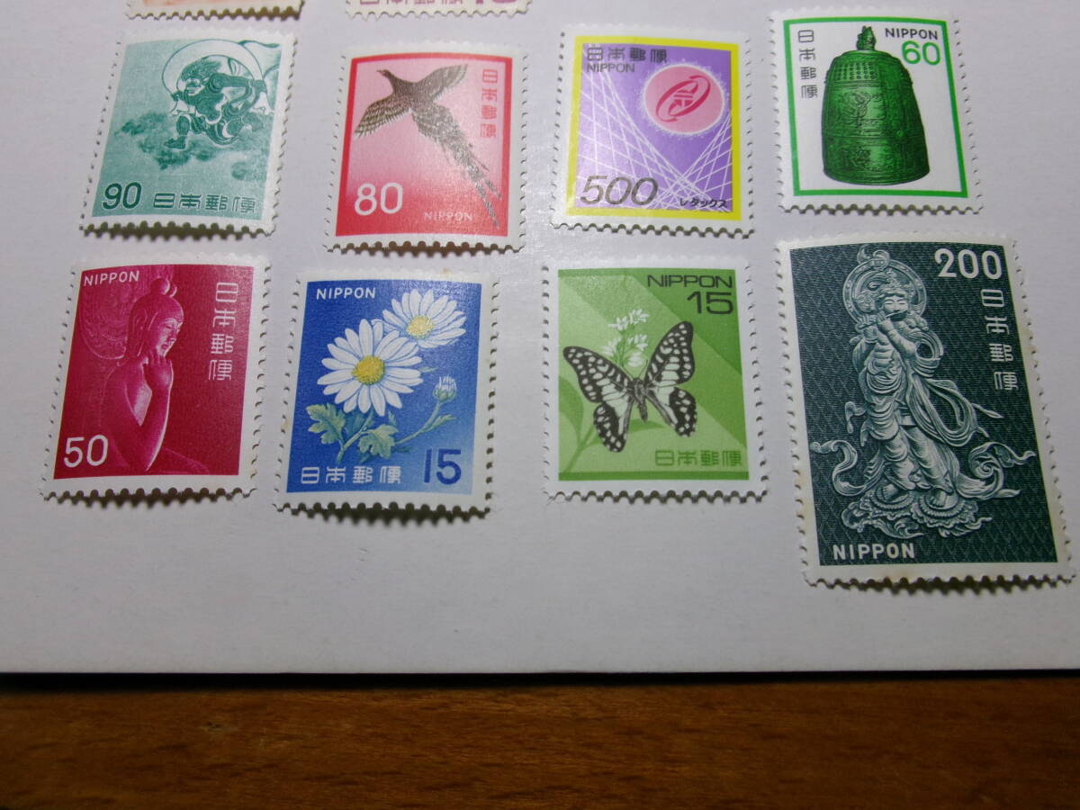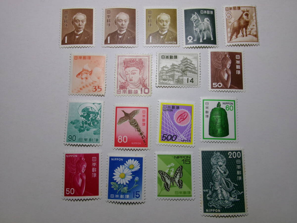 動植物国宝図案切手 円単位 風神 金魚 菩薩など 17枚セット 汚れや傷 未使用 黒-LA