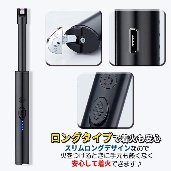 ★プラズマライター スリムロング アーク放電 着火ライター 電子ライター USB 充電式 アウトドア用品 プラズマ着火ライター ロングタイプ