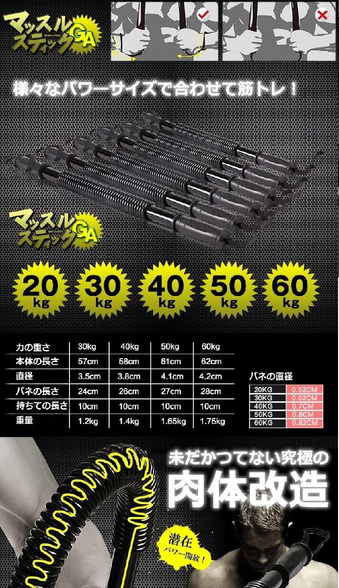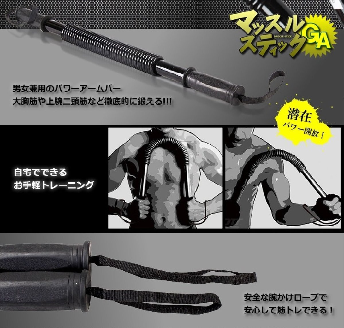 筋トレ用品の最新器具!「マッスルスティックGA」が登場です 究極の肉体改造をここに実現!! 男女兼用のパワーアームバーが 自宅でできるお手軽トレーニング |