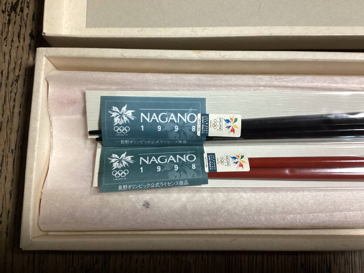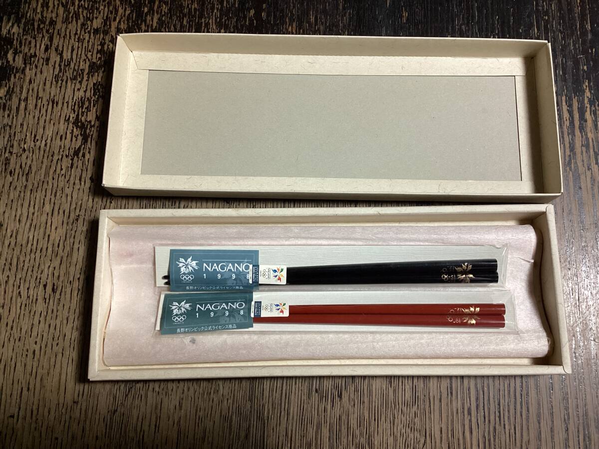 1998長野オリンピック 公式ライセンス商品の漆塗り夫婦箸です