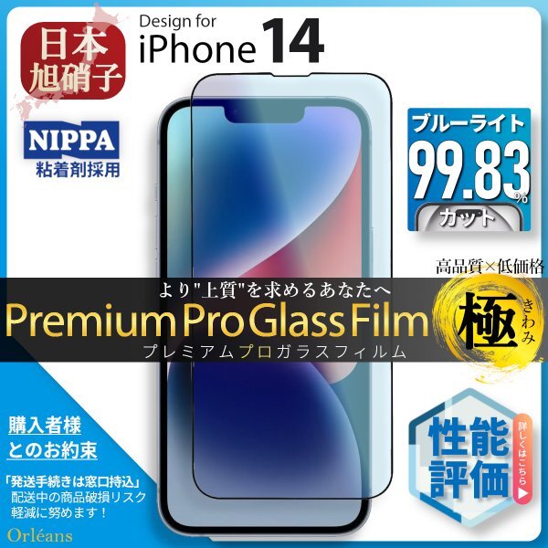 iPhone 14 ブルーライトカット 強化ガラスフィルム 旭硝子 全面保護 自動吸着 保護フィルム 液晶保護フィルム