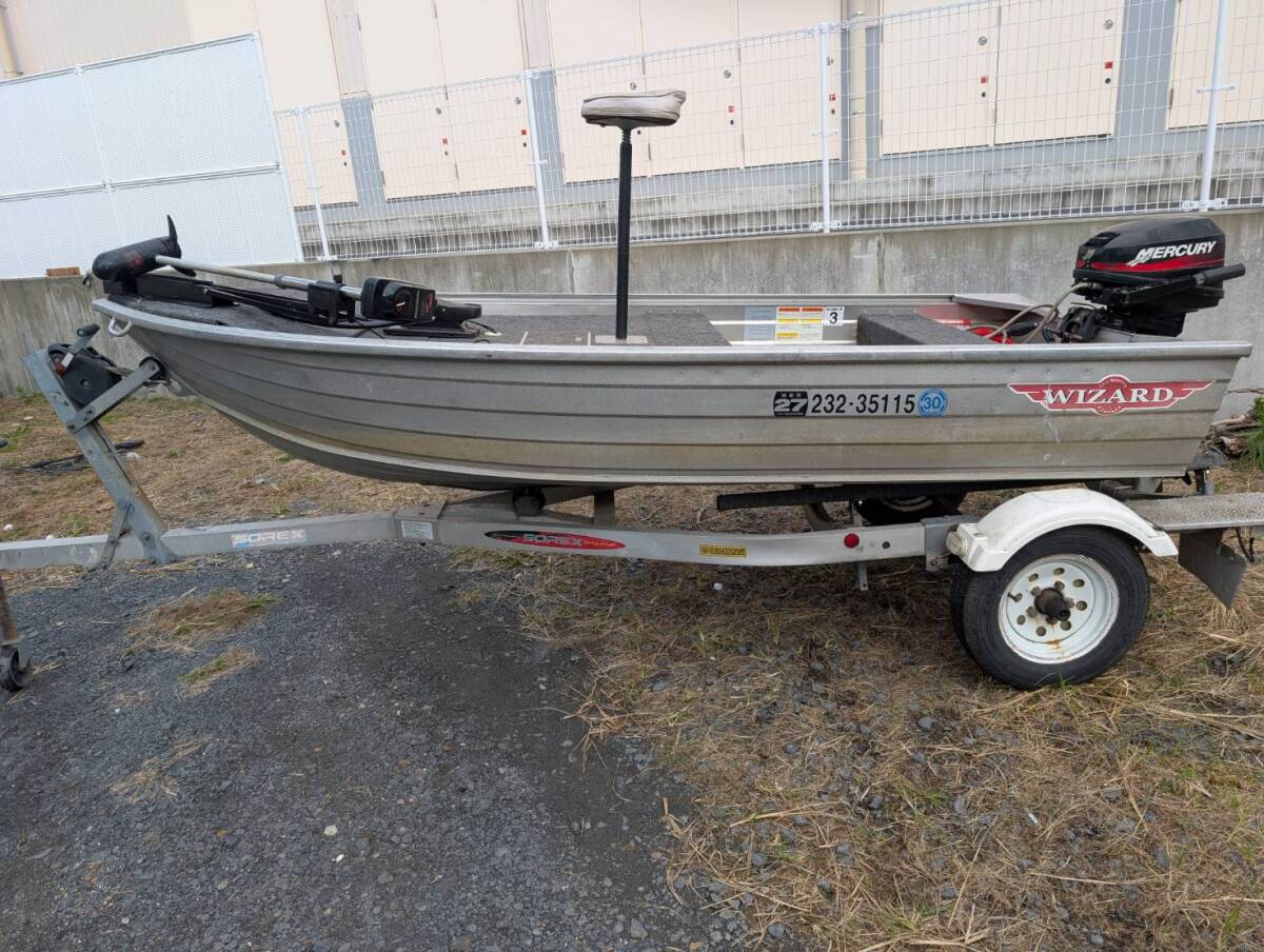 即乗れます。ウィザード335セット(船検残り5年) マーキュリー8馬力 モーターガイド36ポンド ボートカバーセット 茨城県内送料無料 トレーラーは含みません、