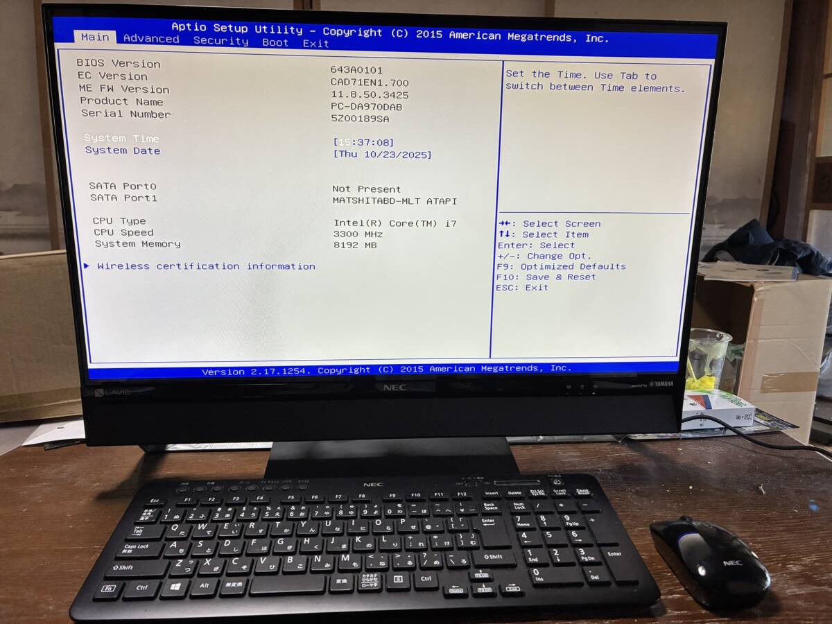 【パソコン】LAVIE Desk All-in-one DA970/DAB PC-DA970DAB i7-第6世代、8GB【ジャンク】
