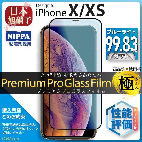 iPhone X iPhone XS ブルーライトカット 強化ガラスフィルム 旭硝子 全面保護 自動吸着 保護フィルム 液晶保護フィルム