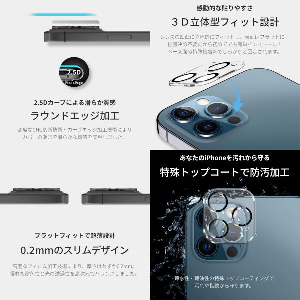 iPhone 13 Pro / iPhone 13 ProMax カメラ レンズ カバー 専用設計 保護 フィルム プロテクター 超得2セット 全面保護 飛散防止 白飛び防止