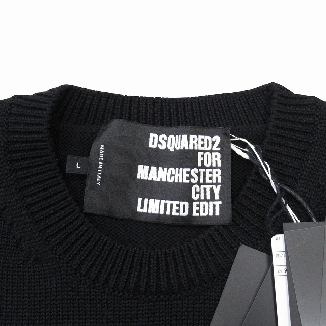 未使用品 23AW ディースクエアード DSQUARED2 ロゴ ウール ニット セーター カットソー 長袖 S71HA1242 サイズL 黒 ブラック メンズ