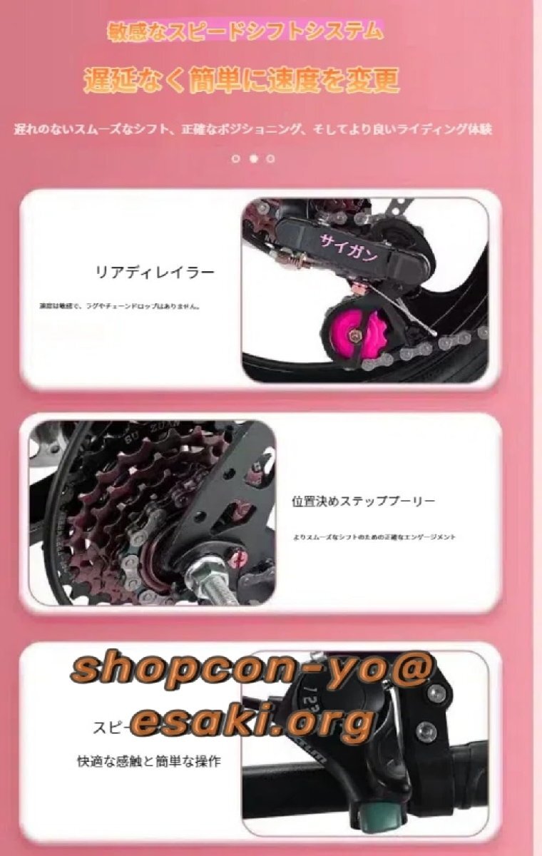 この折りたたみ変速自転車は、14/16インチのサイズをラインナップし、成人から小中学生まで幅広く使用できるコンパクトな小輪車です。ディスクブレーキを搭載し、制動力が安定し雨天でも確実に止まるため安全性に優れます。 折りたたむ事ができるので、玄関などの狭い場所での保管が可能。また車載もできるので、キャンプ場や旅先での使用にも選ばれています。 が搭載され、坂道や平坦路などの状況に合わせてスムーズにギアを変更でき「?松?速不??」です。初心者でも簡単に操作でき、効率的な走行をサポートします。