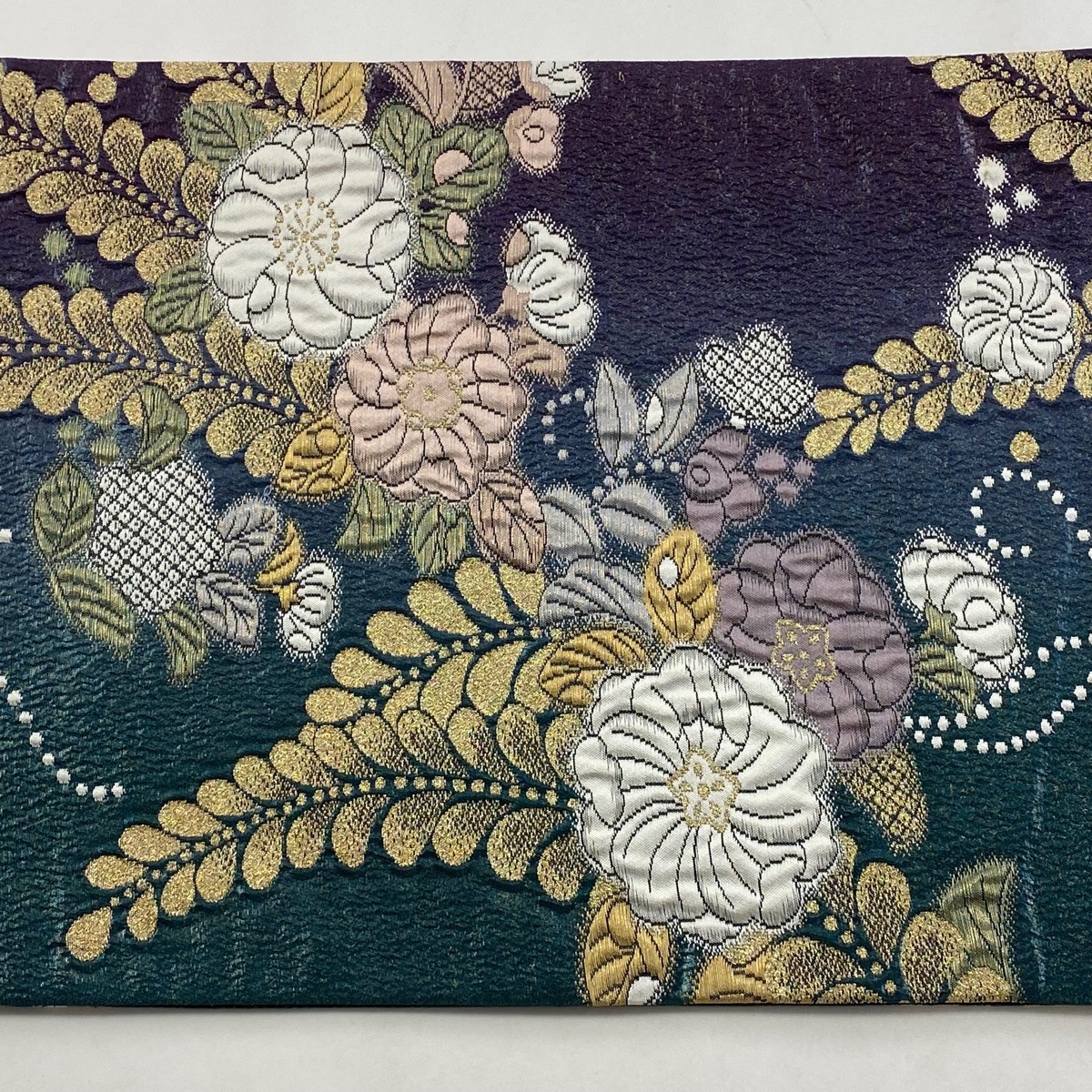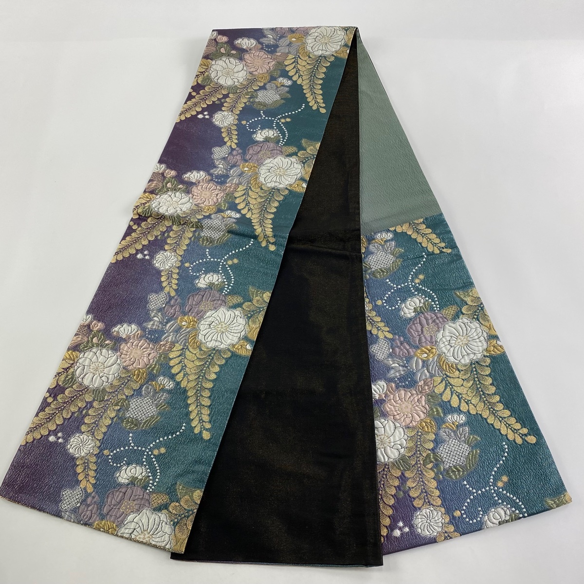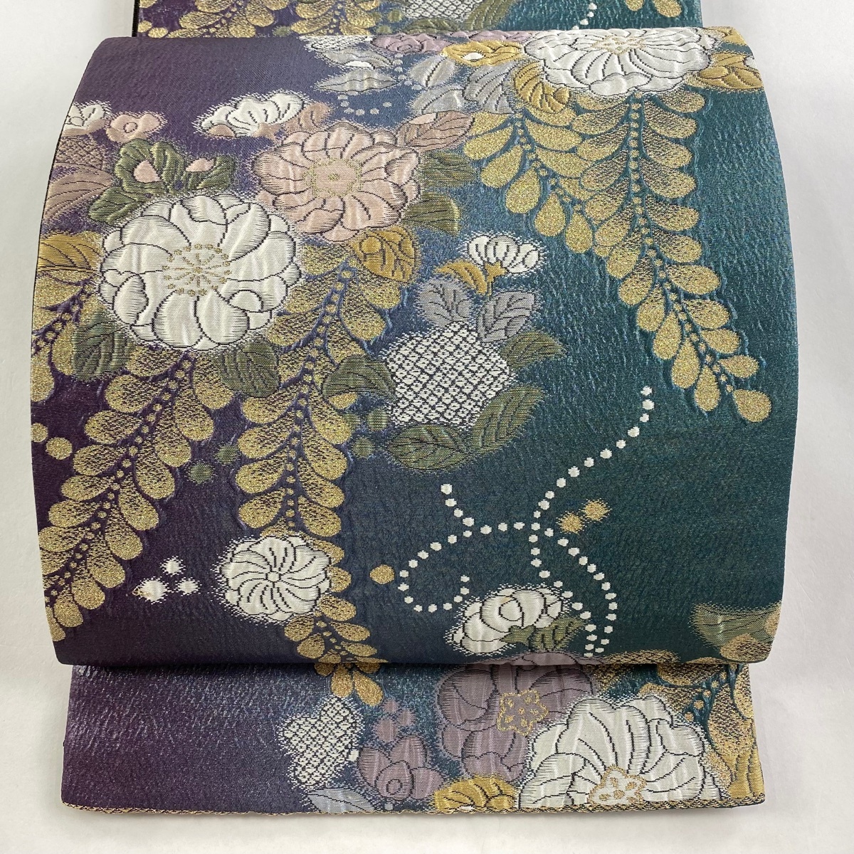 | 袋帯 美品 秀品 草花 金糸 箔 青紫 六通 正絹 【中古】 |