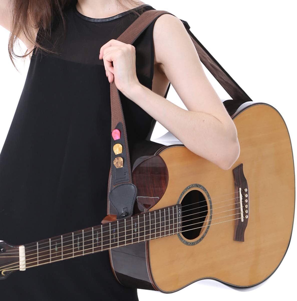 ・調整可能 コットンストラップ レザーヘッド(ピック ポケット付)