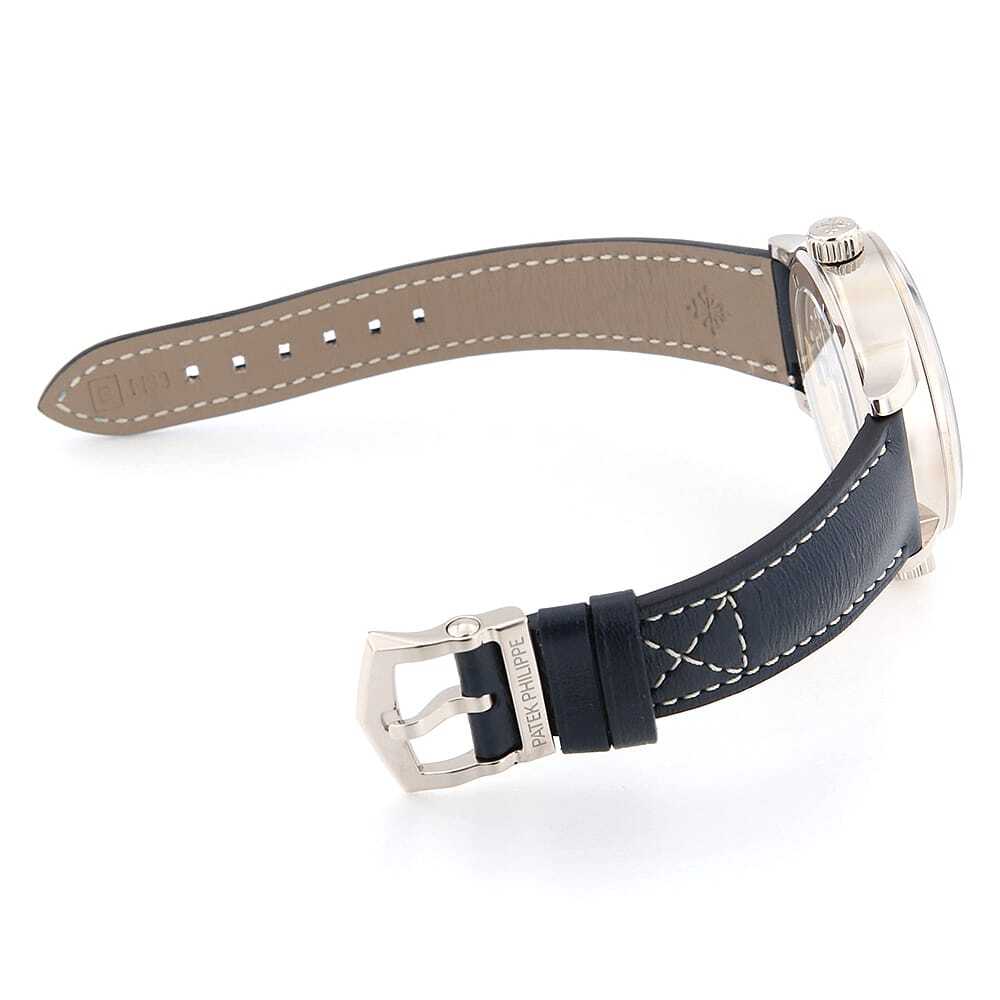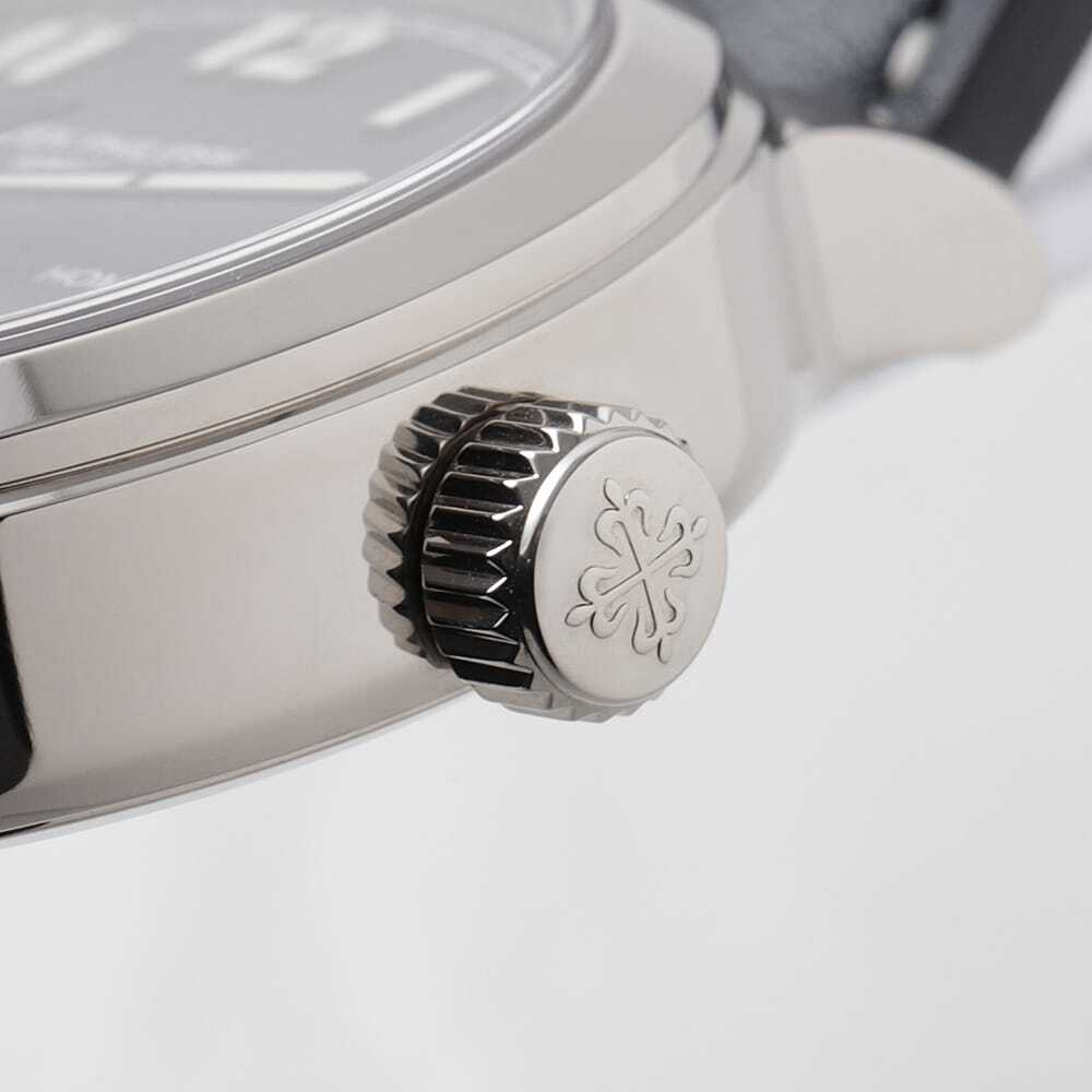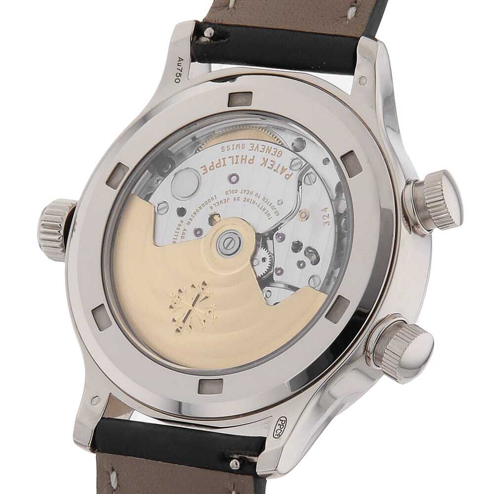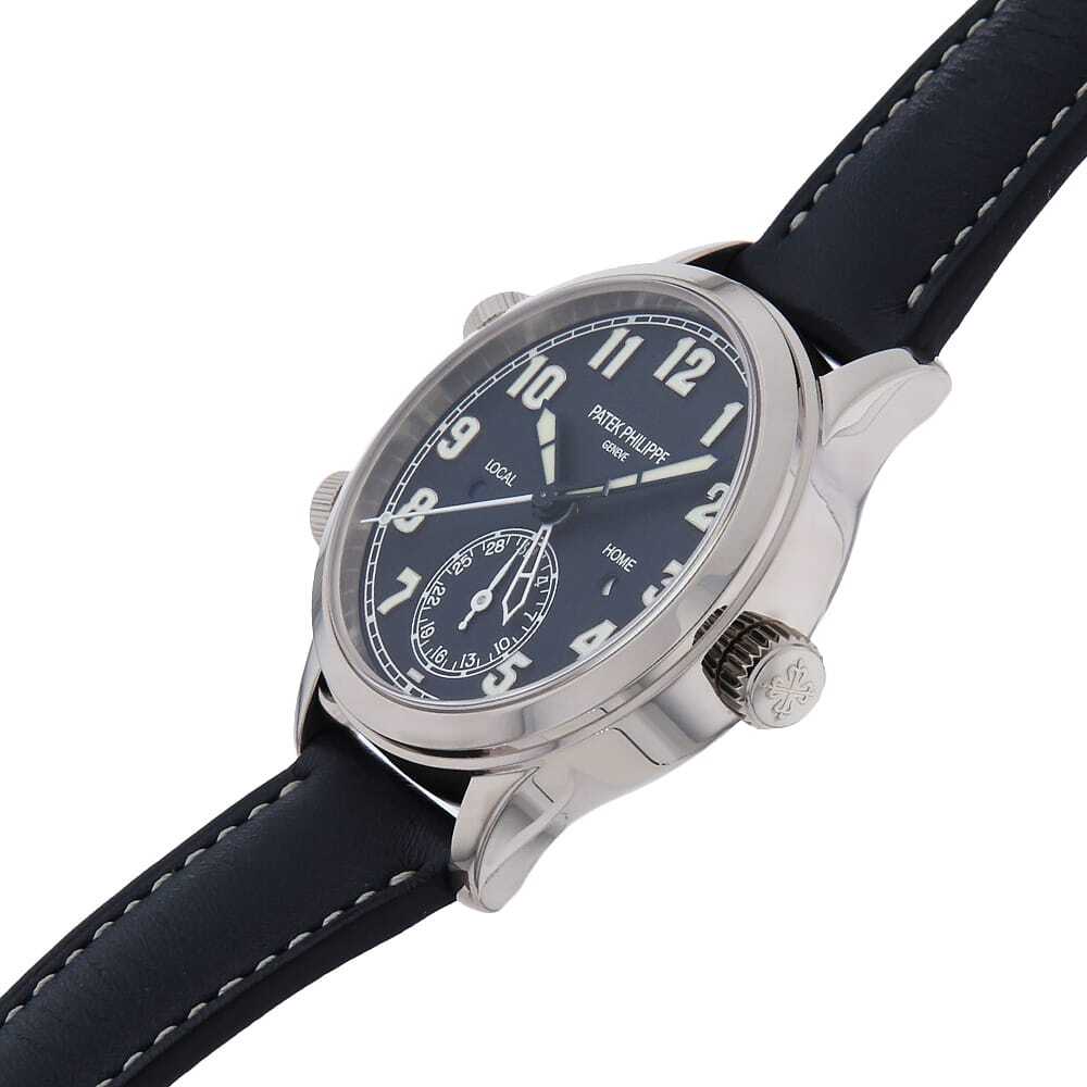 モデル情報 | 2020年に発表された「カラトラバ パイロット トラベルタイム」です。こちらは、2本ある時針で2つの異なる時刻を同時に表示できる時計です。ローカルタイムをケースサイドのプッシュボタンを押すことで表示しますが、1時間ずつ進めるだけに止まらず、1時間ずつ戻す事を可能にしておりパテックフィリップの技術力の高さを感じさせる機能です。IWCのようにもゼニスのようにも見えるパテックフィリップらしくないルックスが特徴です。6気圧防水。ケース径:37.5mm、 厚さ:10.78mmで男女問わずどんな手首にもフィットするミディアムサイズになっています。 |