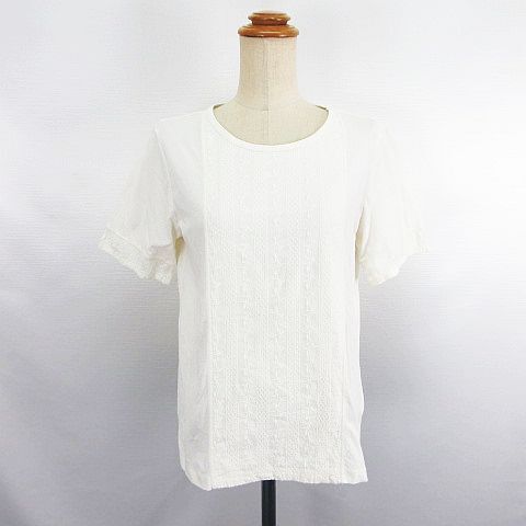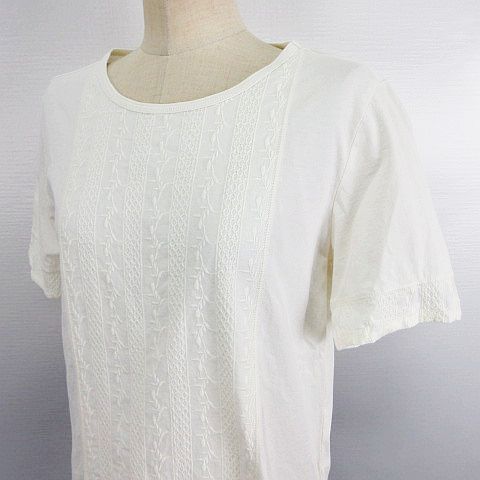 ゴールデンベア GOLDEN BEAR カットソー Tシャツ 半袖 丸首 レース オーガニックコットン L アイボリー ※EKM レディース
